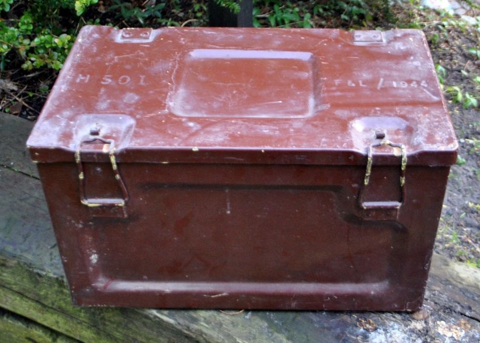 WW2, American ammunition box in painted metal with handle, 1944