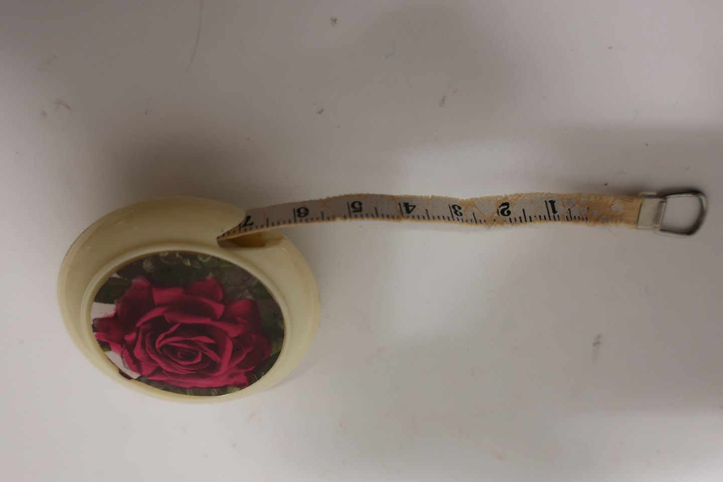 Measuring tool in a round holder, the holder is with a rose decorated