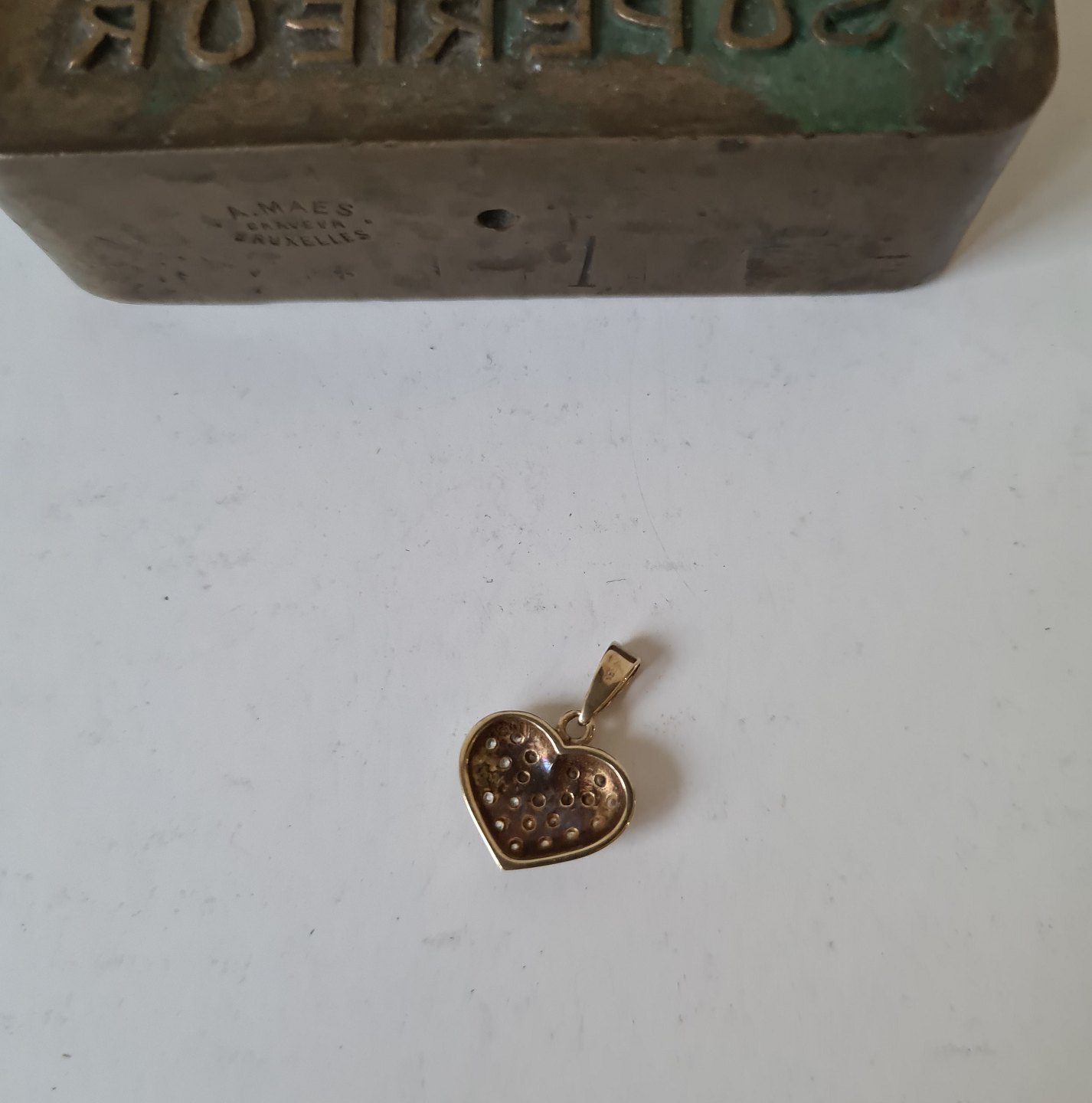 Hjerte vedhæng i 8 kt guld med talrige zirkoner