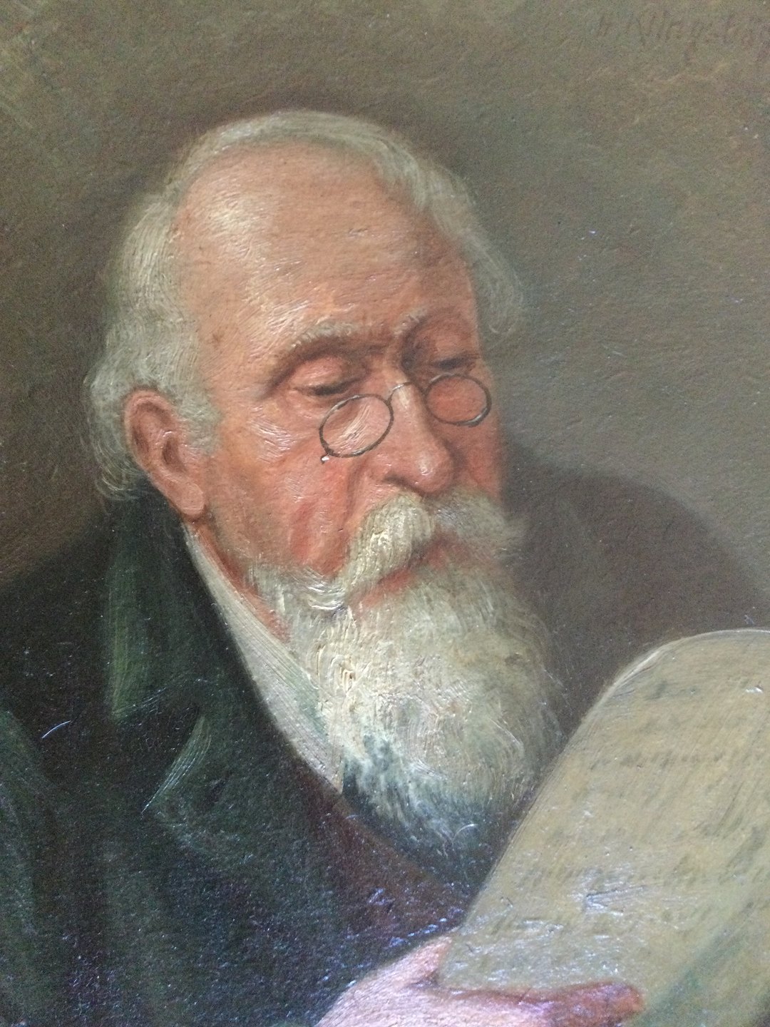 Maleri af Hermann Klingsbögl - Portræt af læsende ældre mand.