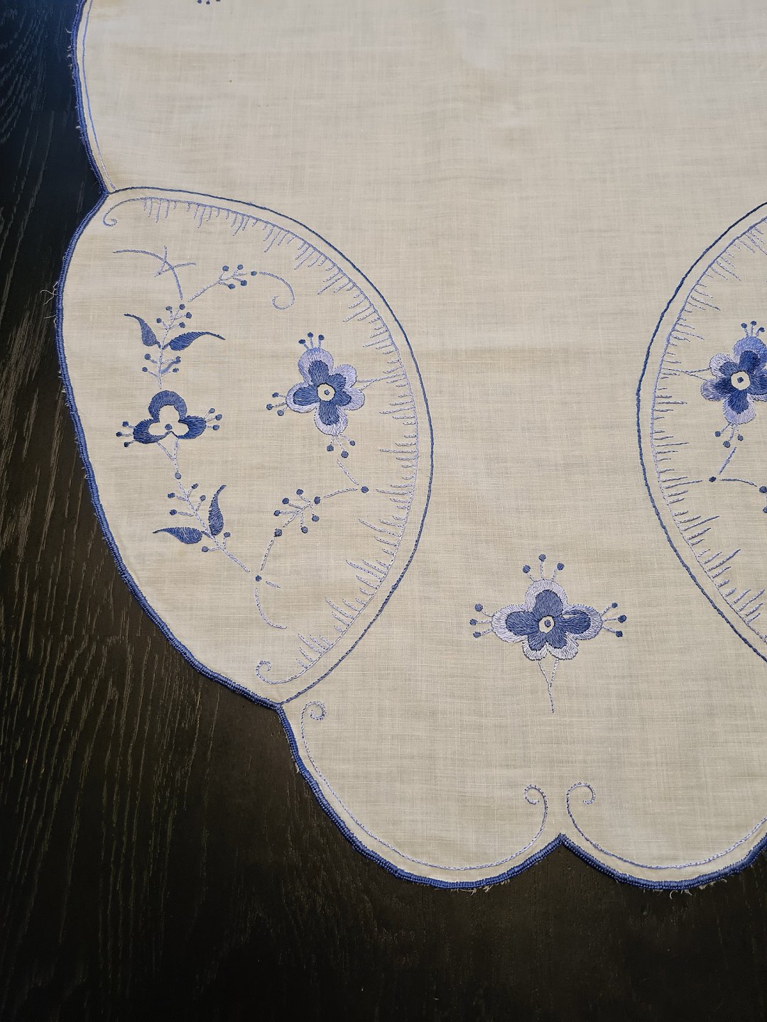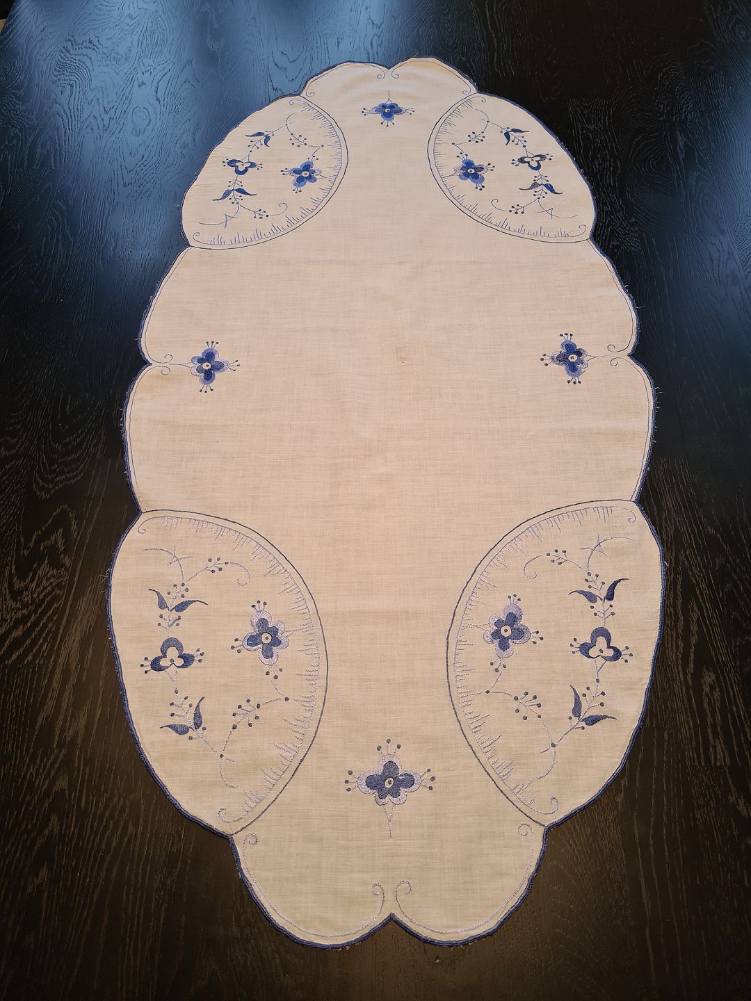 Bordløber broderet med musselmalet mønster 46 x 91 cm.