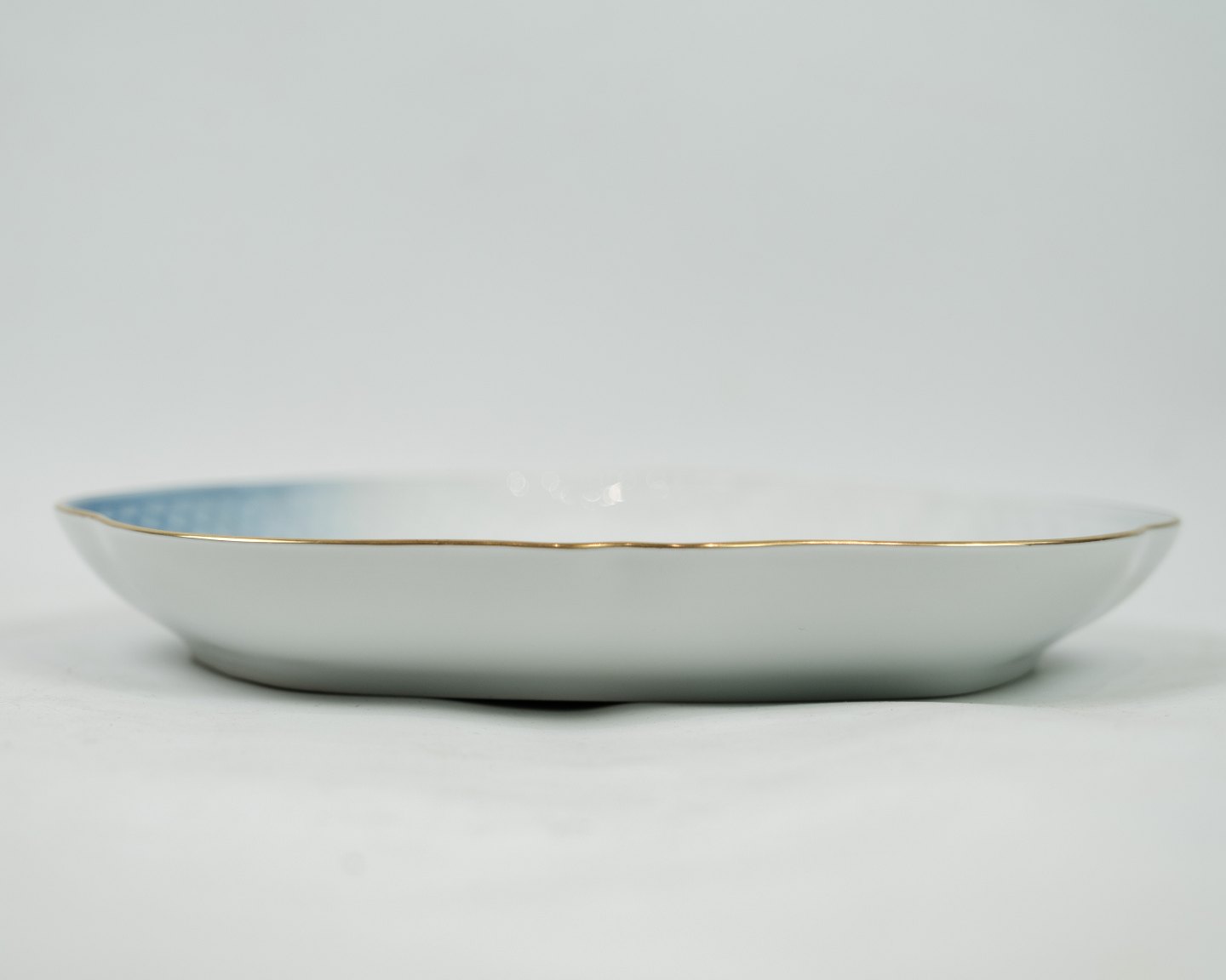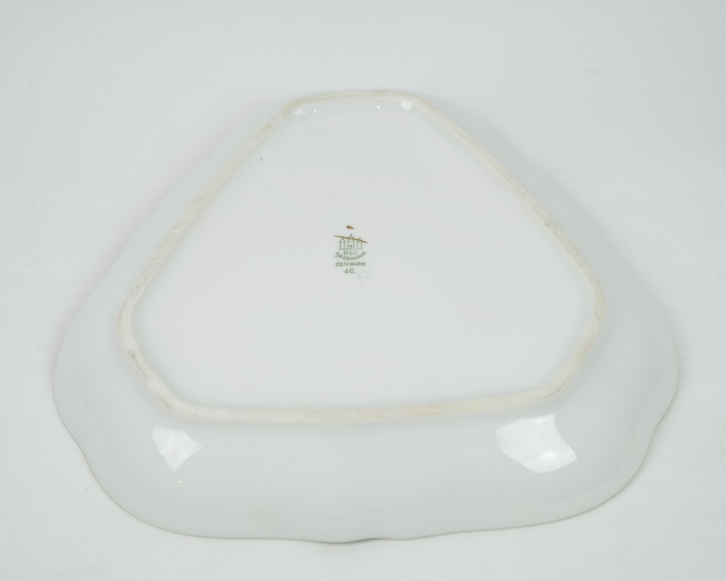 Trekantsfad fra Bing & Grøndahl i mågestel med fin guldkant.
