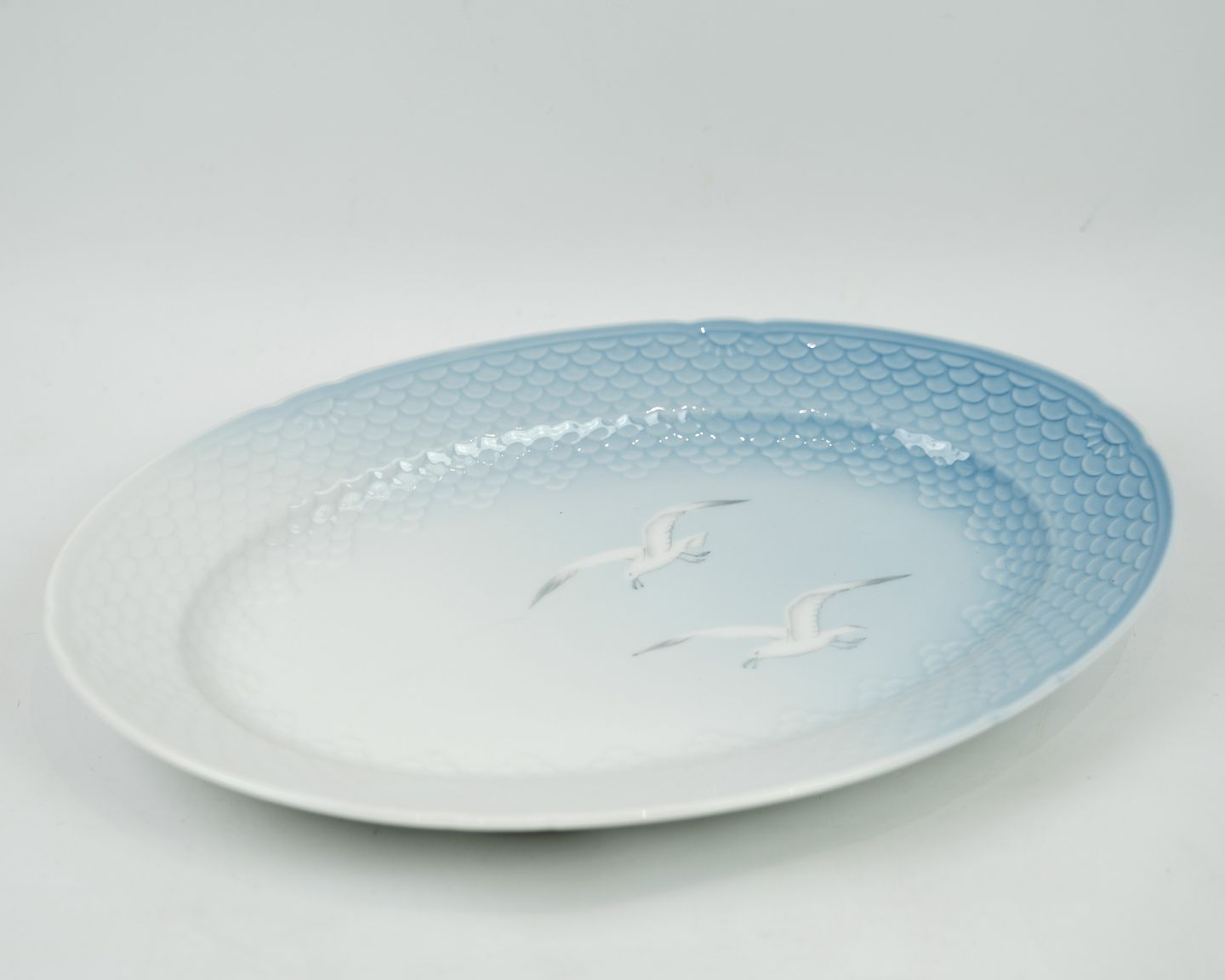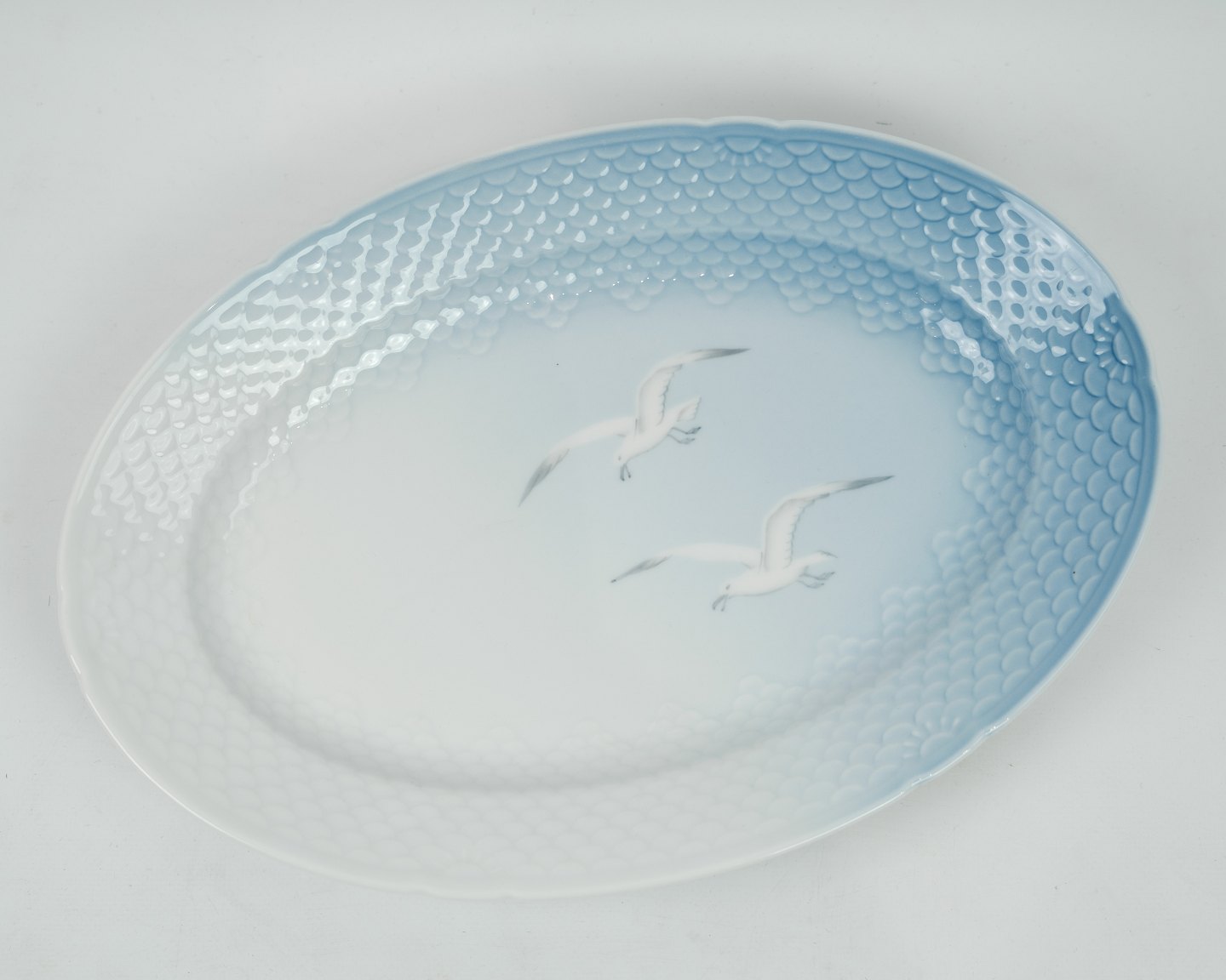 Ovalt fad fra Bing & Grøndahl i mønstret mågestel. Står i meget fin stand.