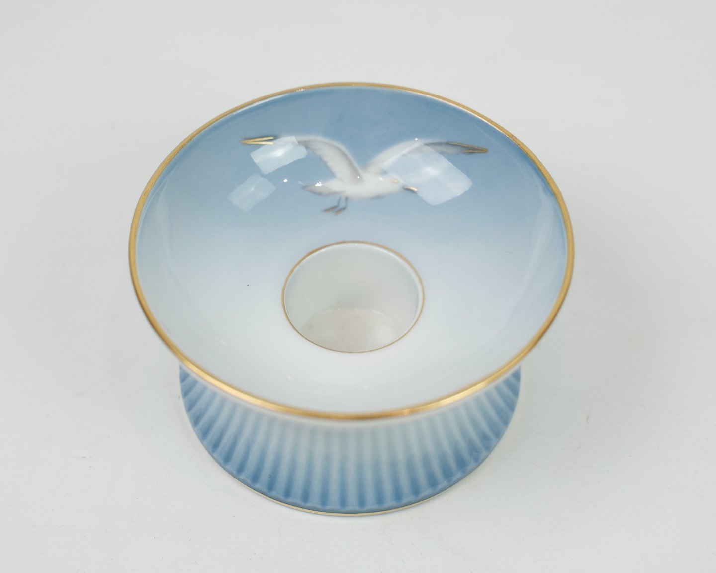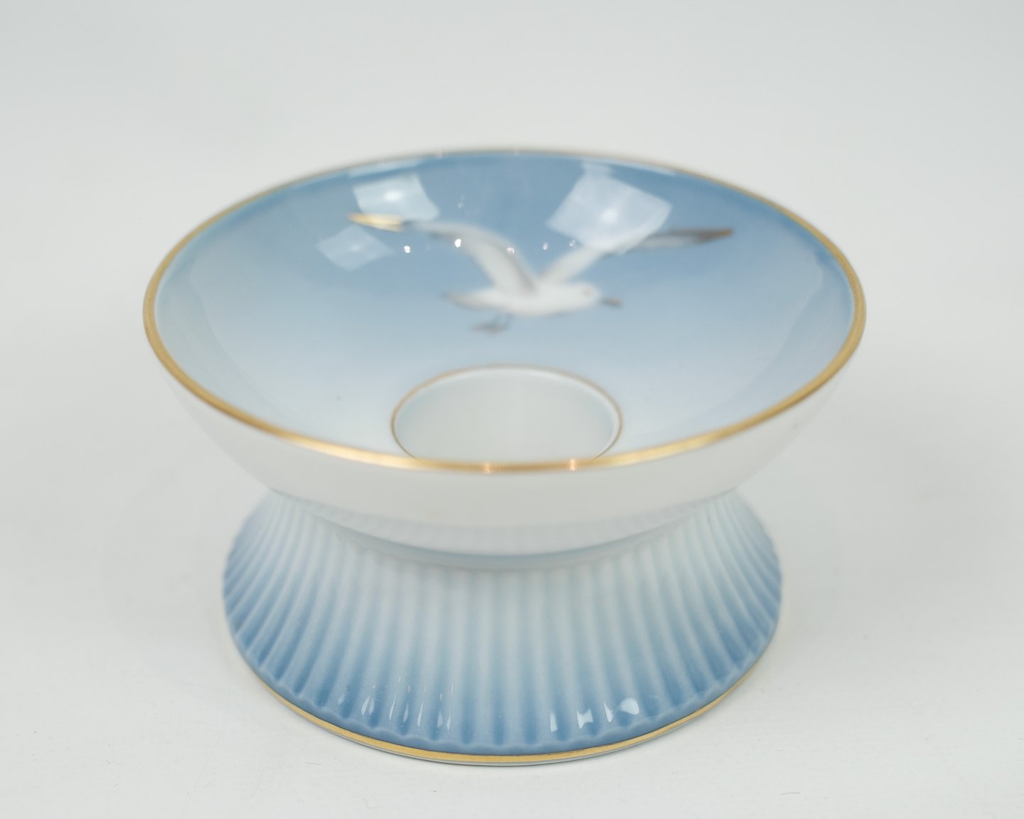 Lysestage fra Bing & Grøndahl i mågestel. Står i meget fin stand med guldkant.
