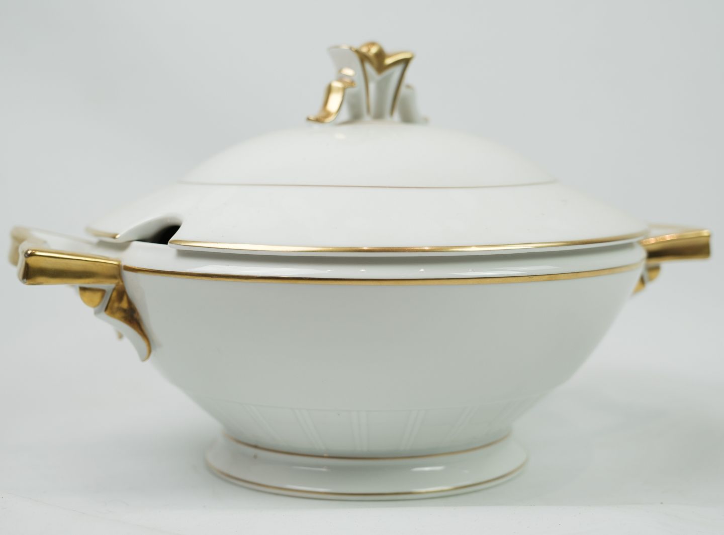 Stor suppe terrin af porcelænsfabrik Hautheim, model 7800. Står super flot i guldet i fin brugt stand.