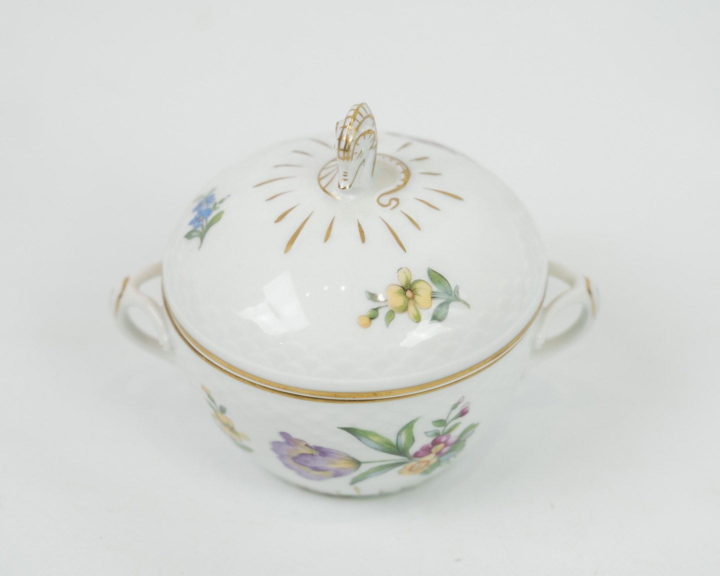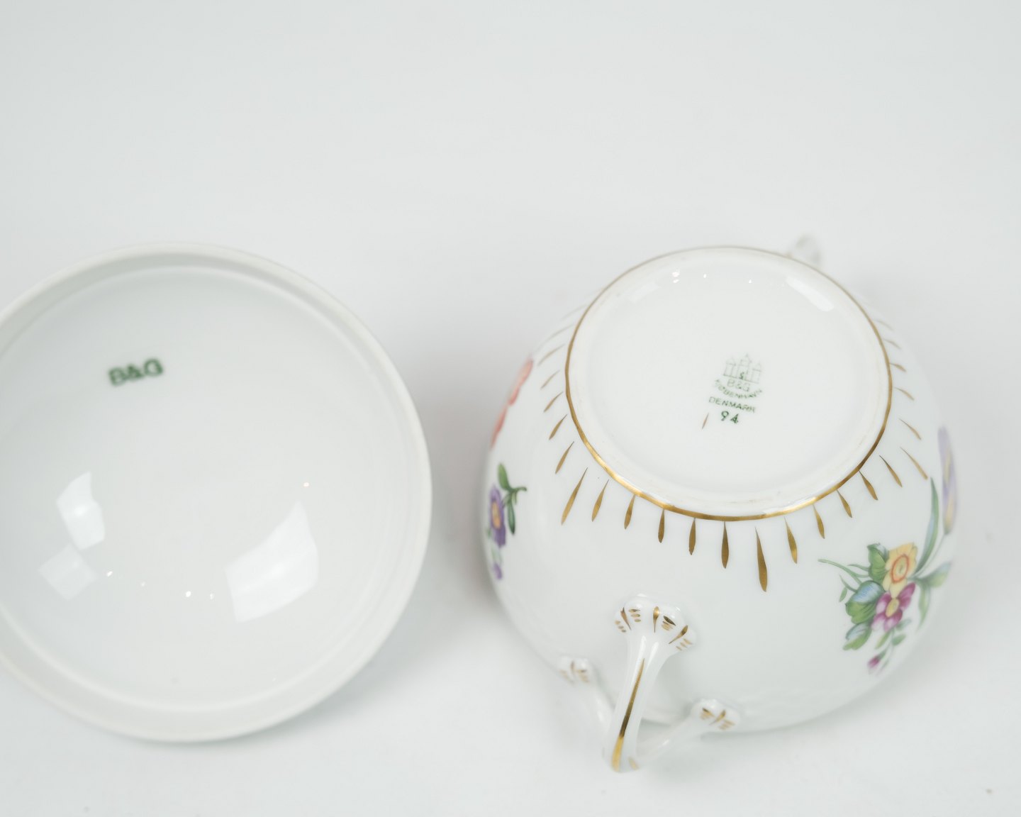 B&G sugar bowl decorated with hand-painted flowers with intact gold edge no. 94
