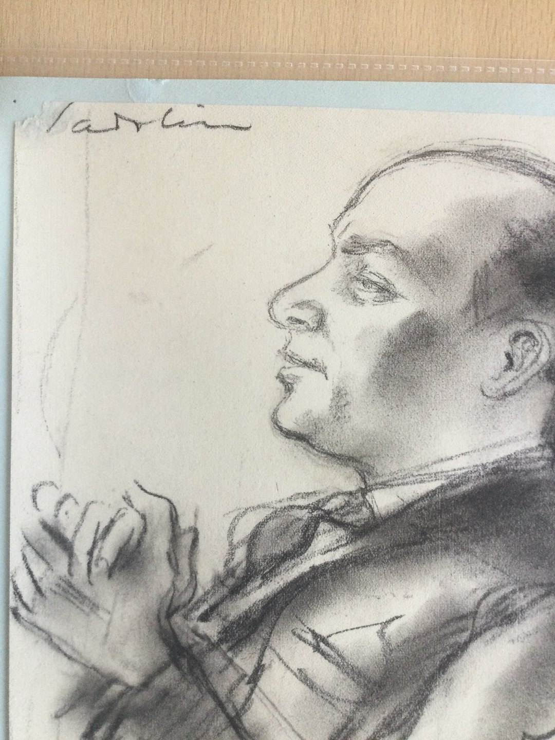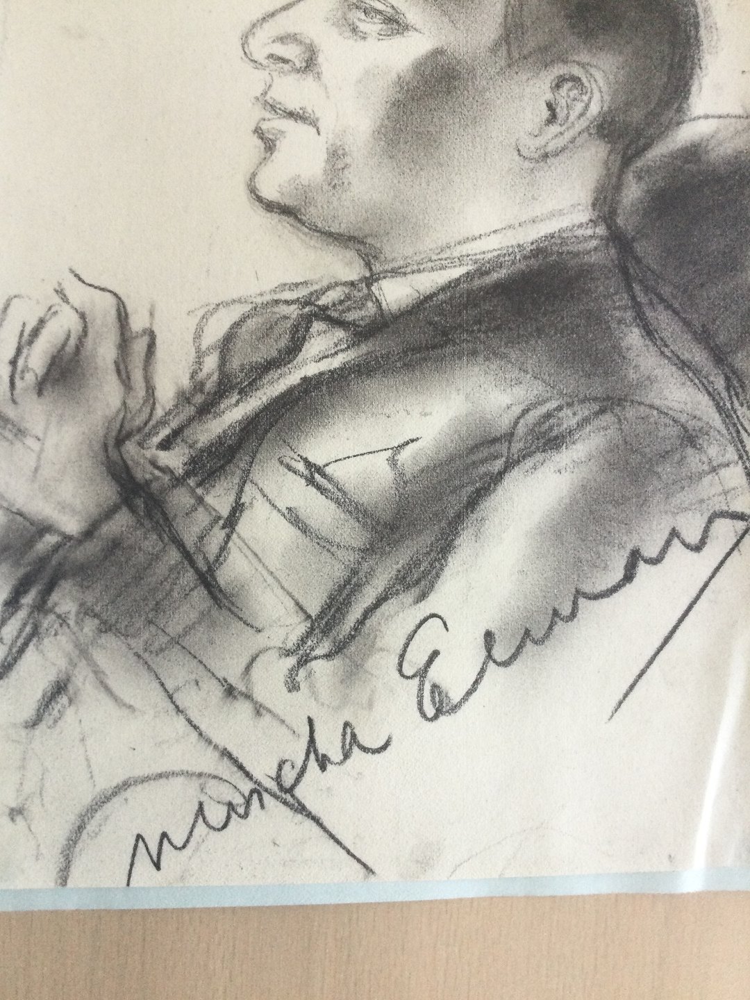 Tegning af Ebbe Sadolin - Portræt af violinisten Mischa Elman (1891-1967).