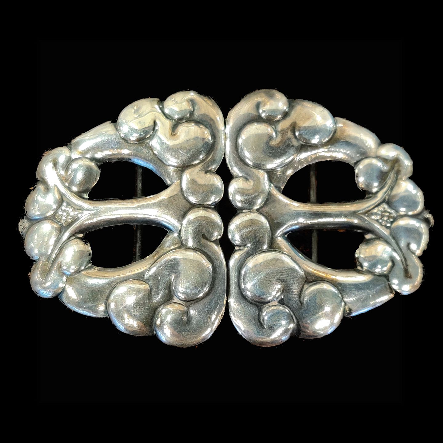 Dansk skønvirke bæltespænde af sølv. Stemplet "826".