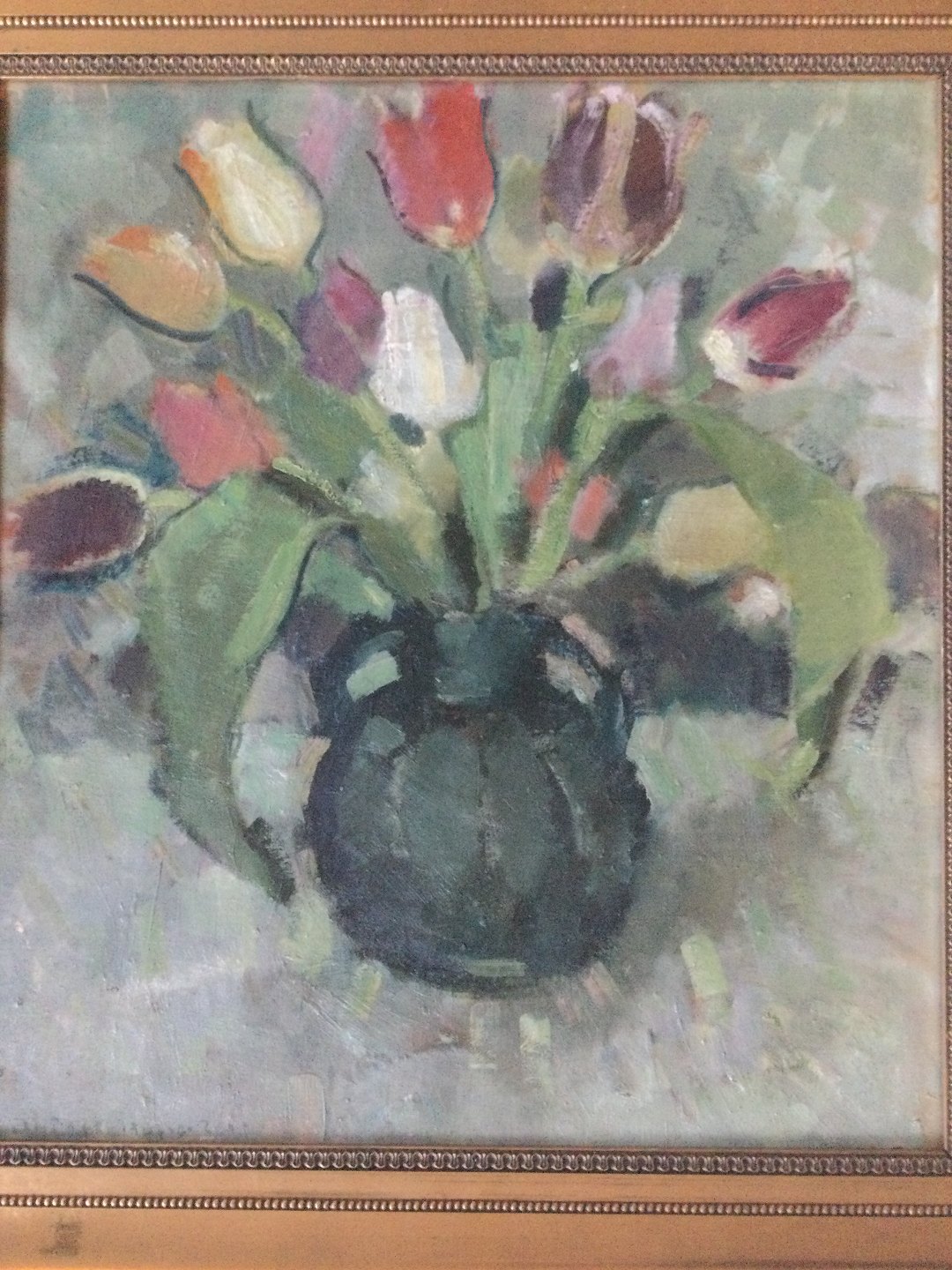 Vase med tulipaner i alle farver 1921