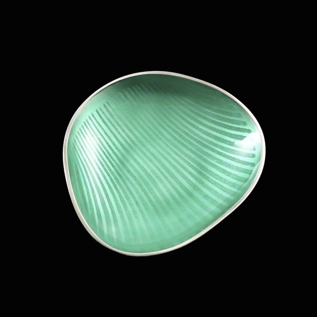 A. Michelsen. Small Sterling Silver Bowl with green Enamel - Eigil Jensen.