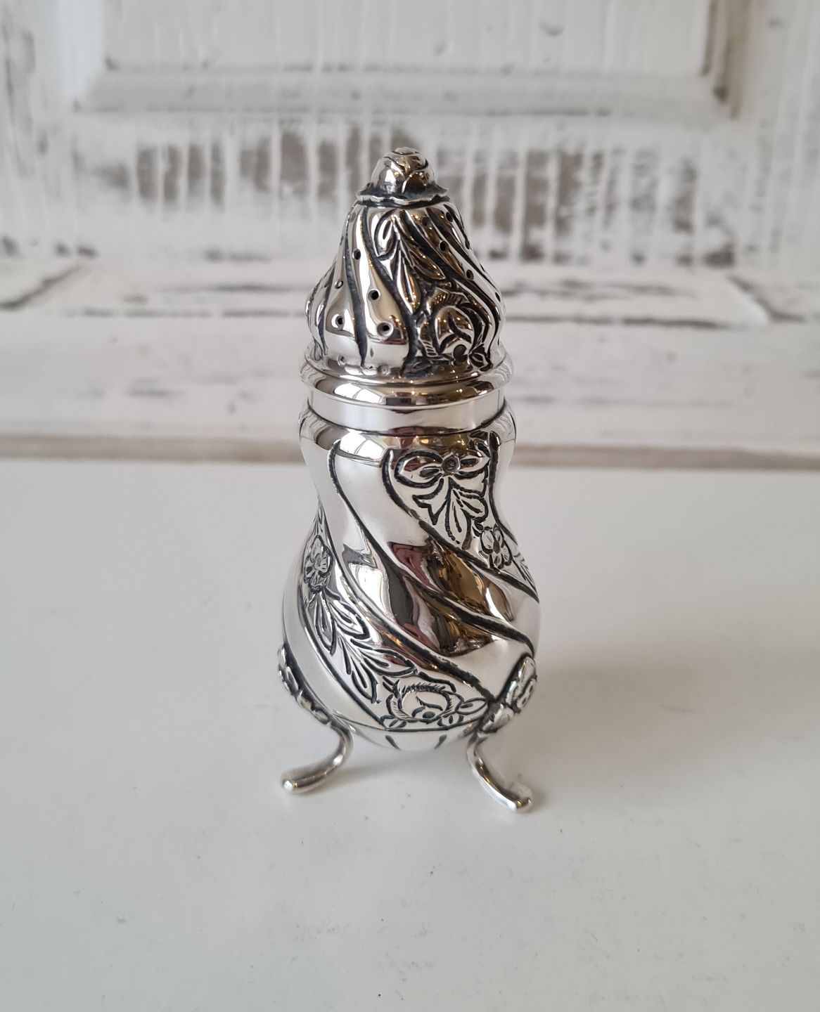 Hugo Grün saltbøsse i sølv. Rokoko inspireret design.