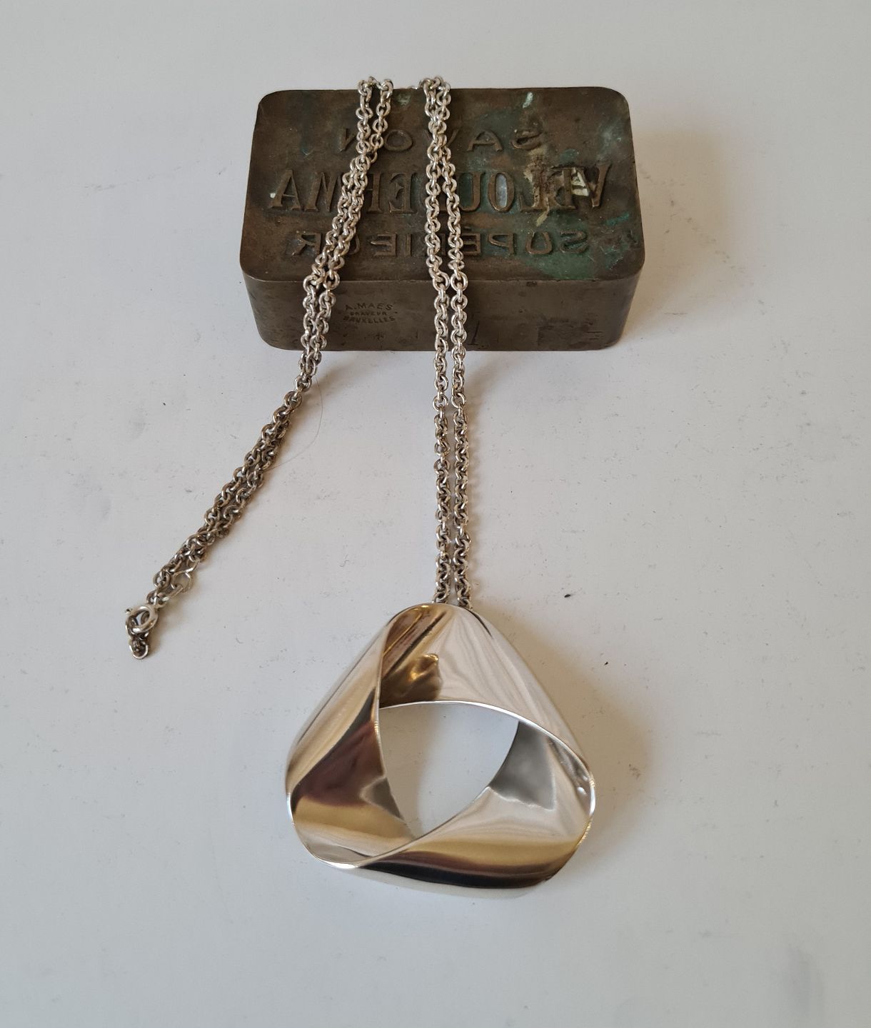 Hans Hansen lang sølv halskæde med stort vedhæng i moderne design