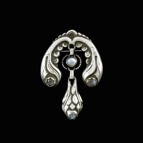 William Fuglede 1907-1937. Skønvirke Broche i sølv med månesten.