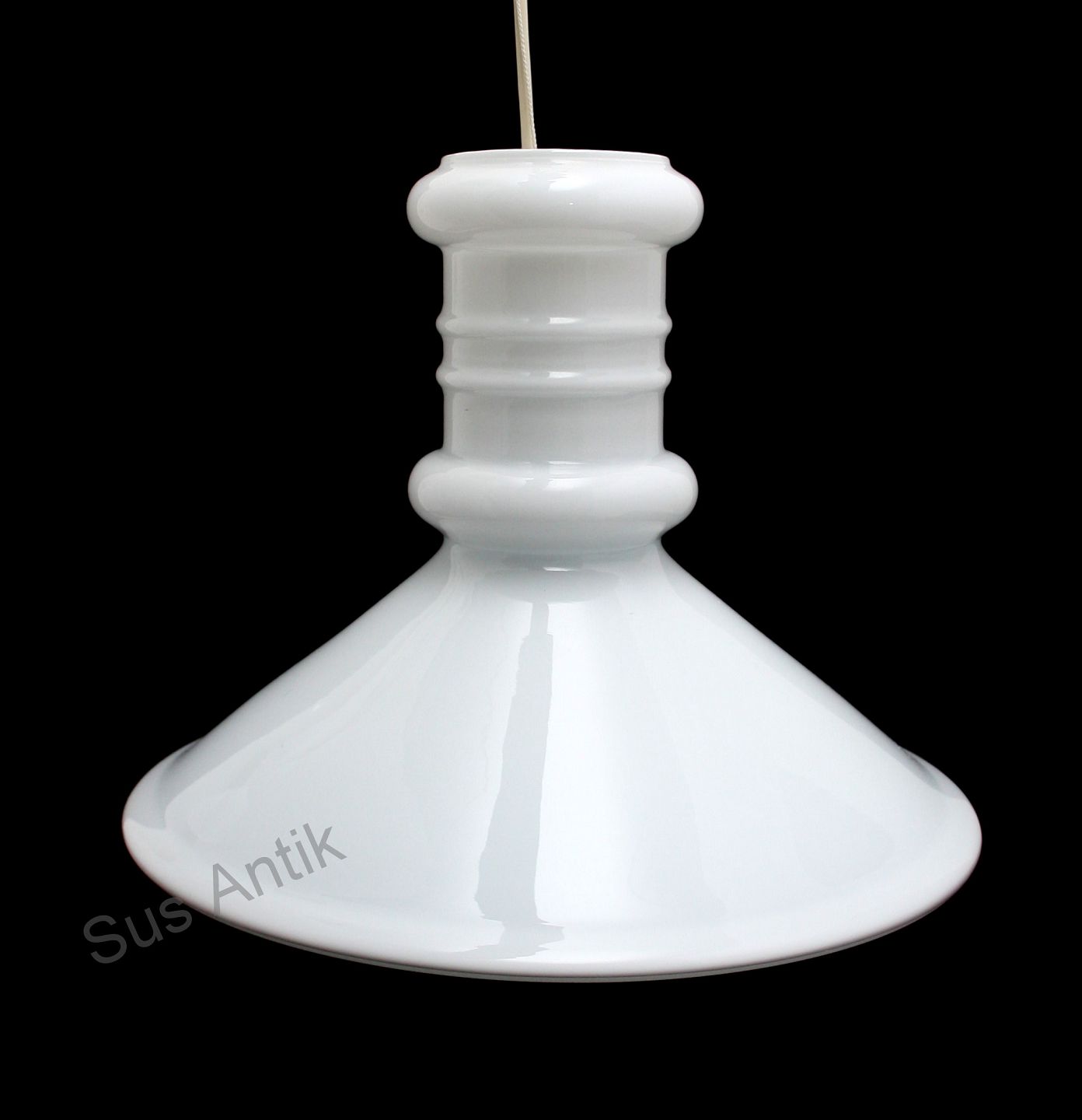Holmegaard, Apotekerpendel i opalhvid glas. Designet af Sidse Werner i 1981. Højde 28 cm. Diameter 37 cm. Fin stand. Pris: 1250 kr. stk. Lager: 1