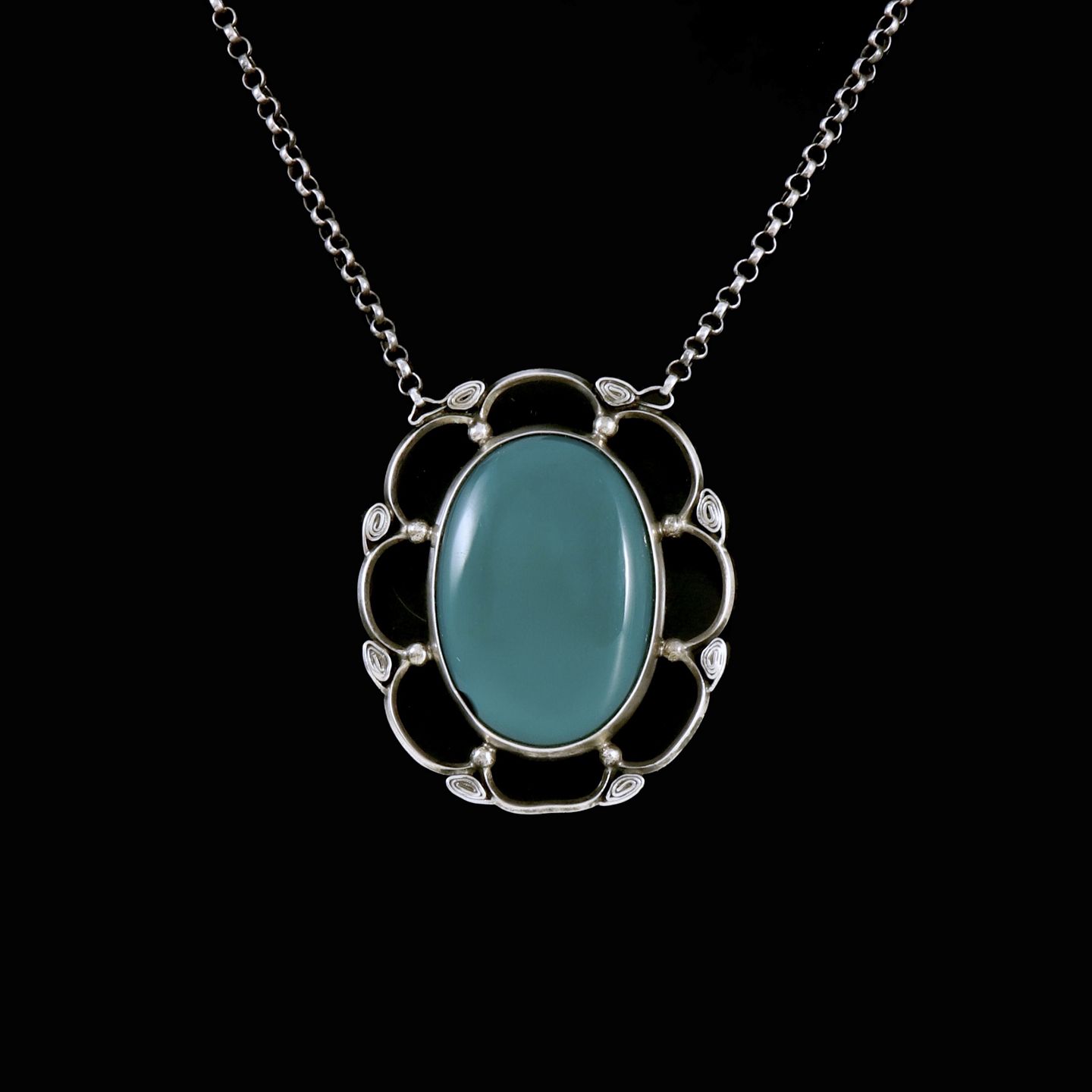 Mogens Ballin's Eft. Skønvirke Vedhæng i sølv med grøn agat.