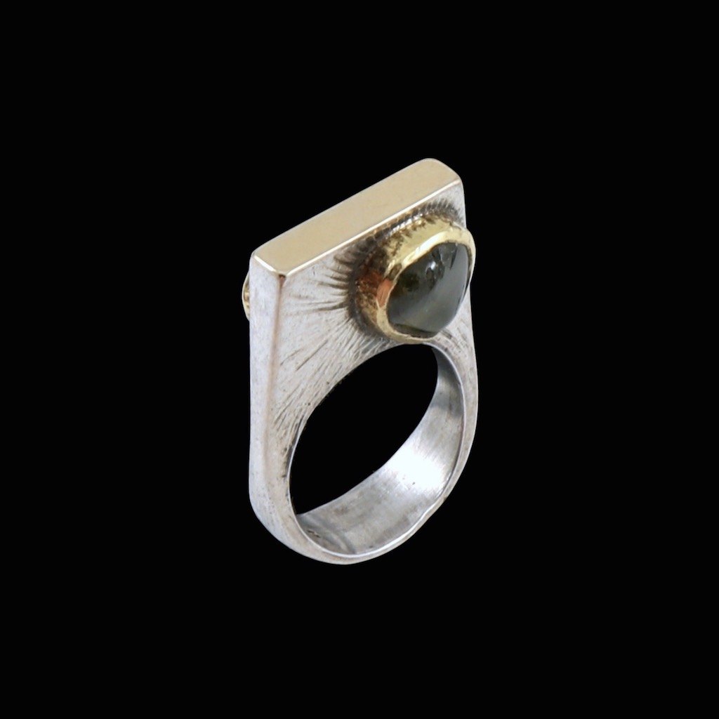 Ole Waldemar Jacobsen. Sterling Siver Ring with 18k Gold and Red and Green Tourmaline.