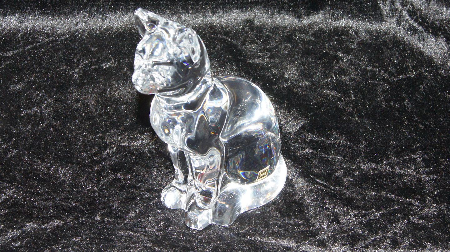 Graverede krystalglasskulptur Siddende Kat