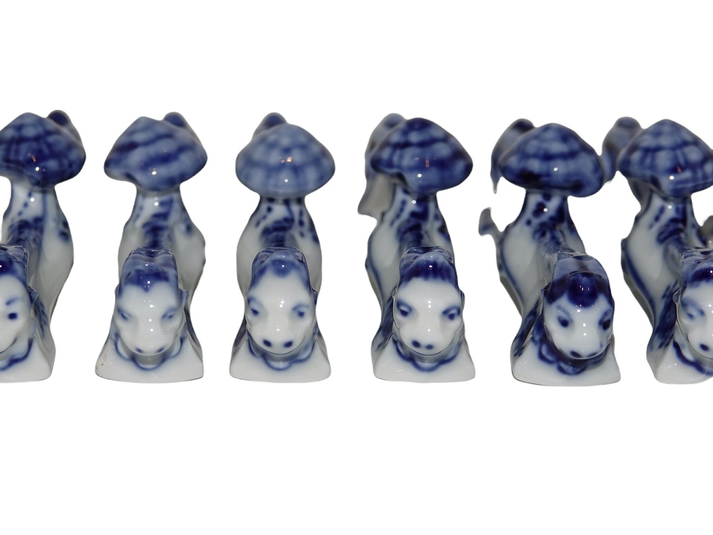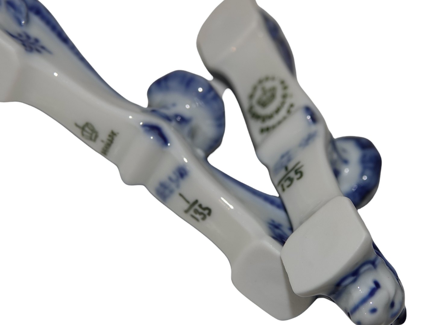 Royal Copenhagen Musselmalet Riflet, knivstol dekoreret med hoveder på siden.