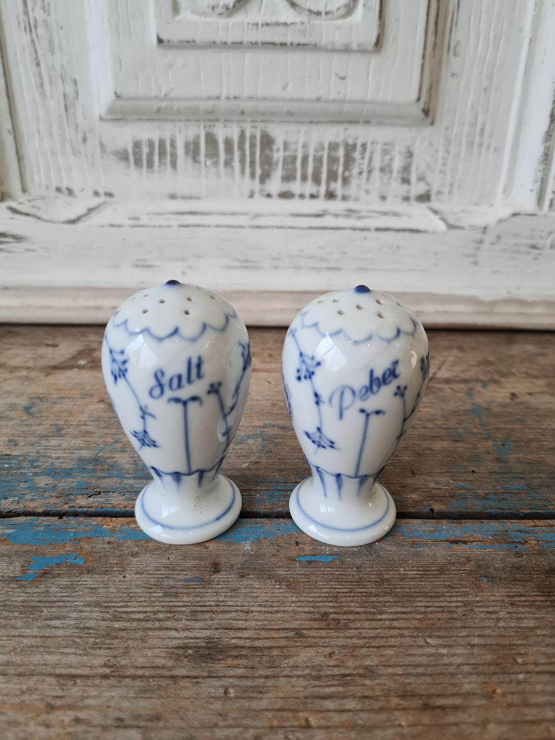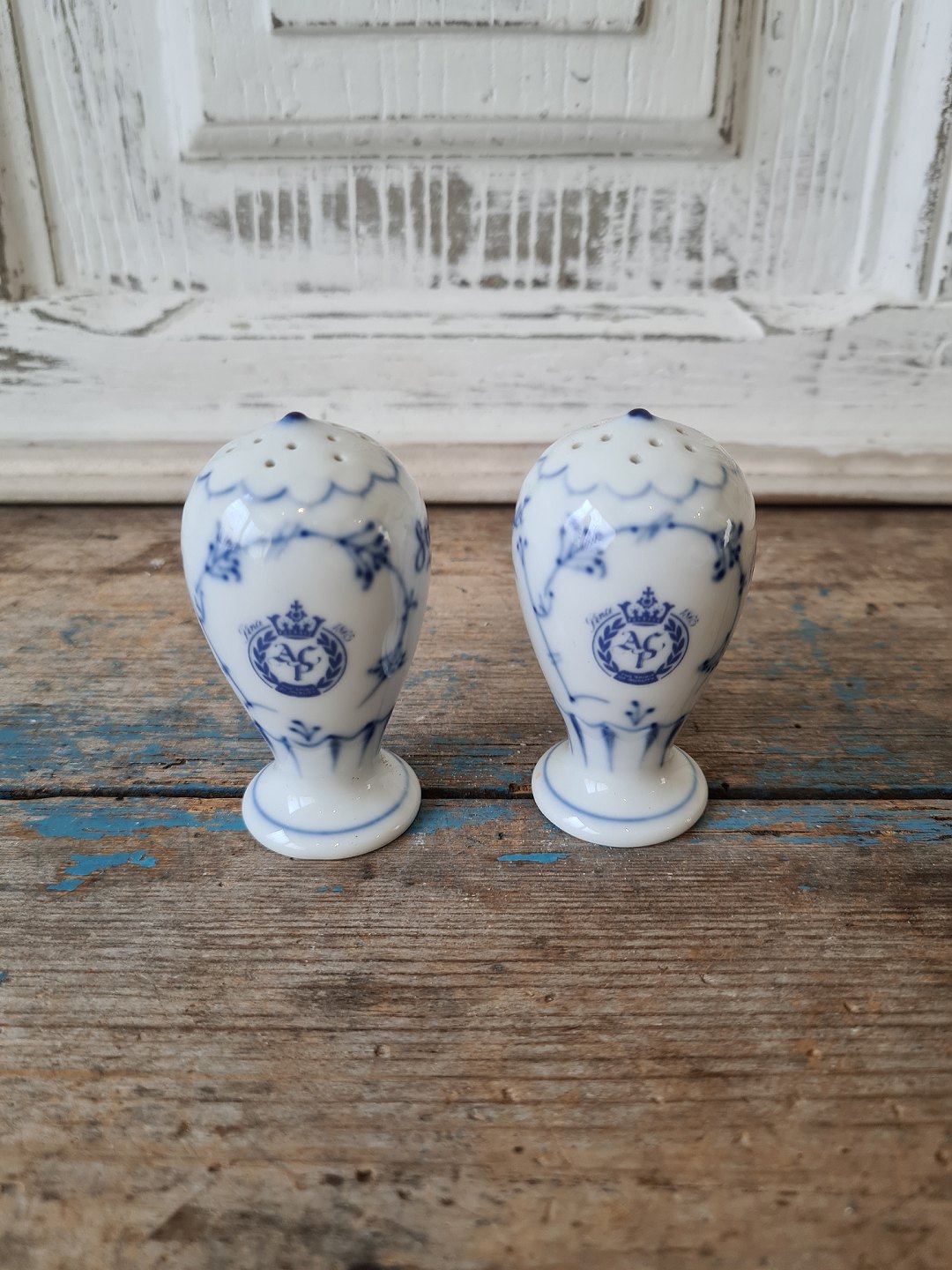 B&G Blåmalet salt & peber sæt med logo
