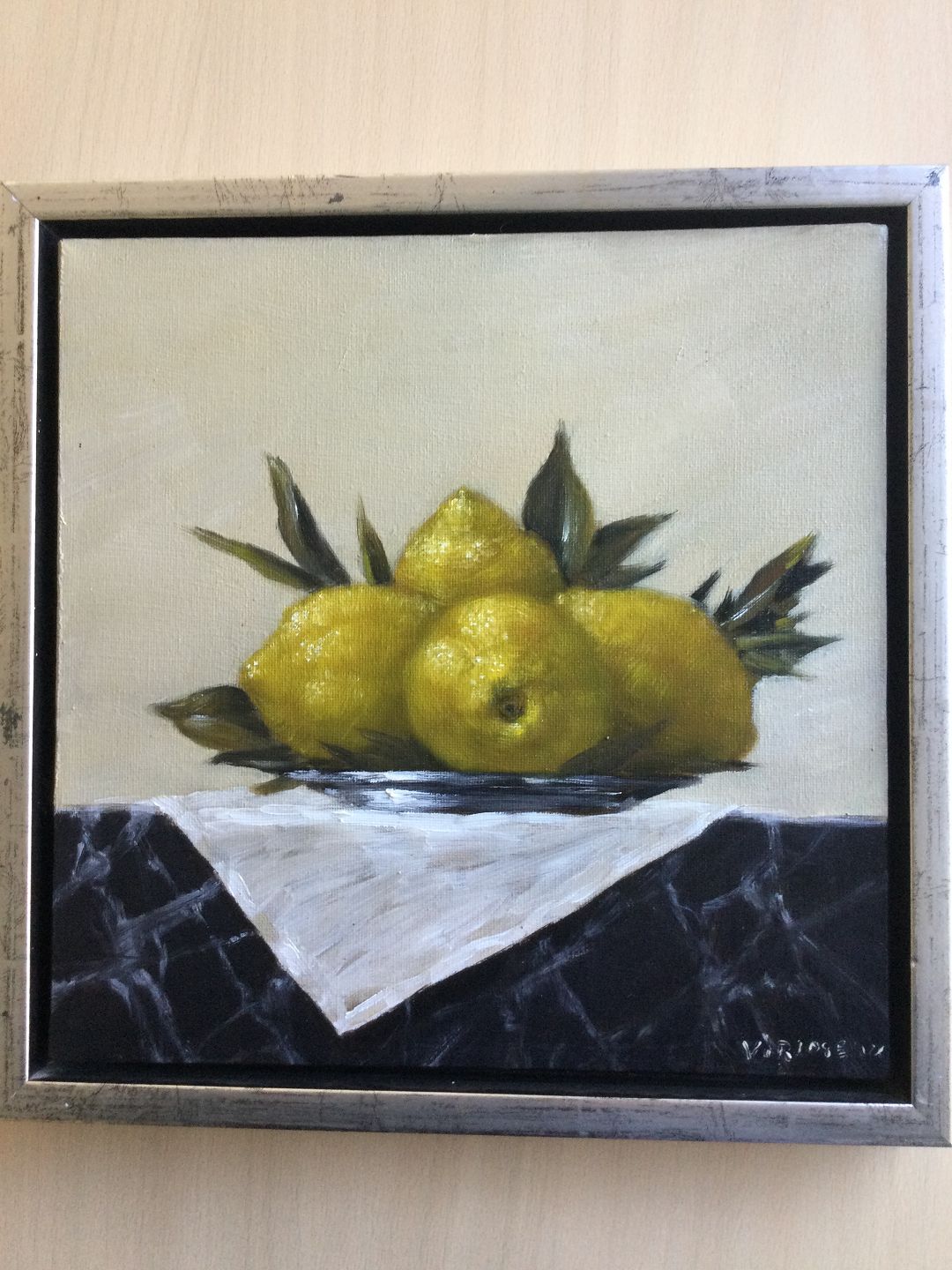 Maleri af Denis Virlogeux - Opstilling med citroner på fad.