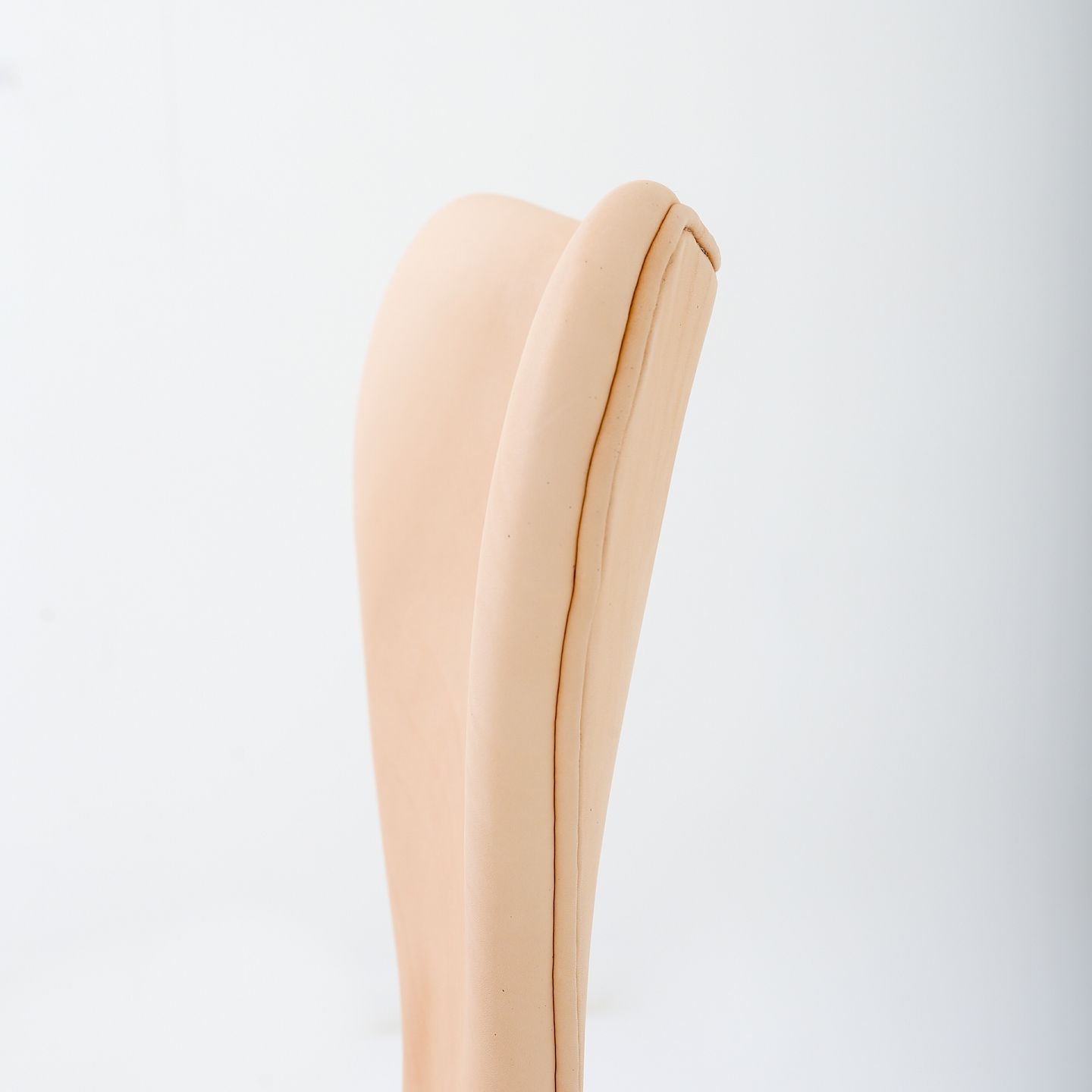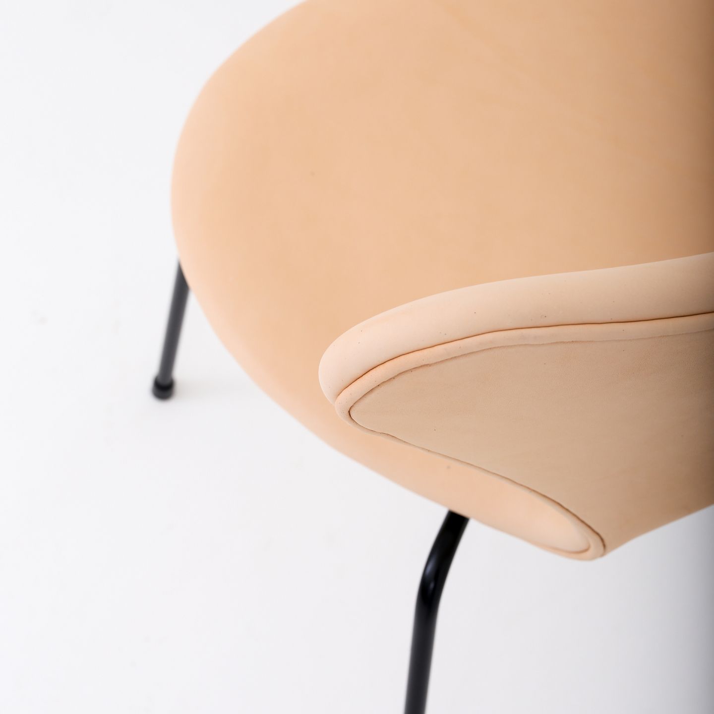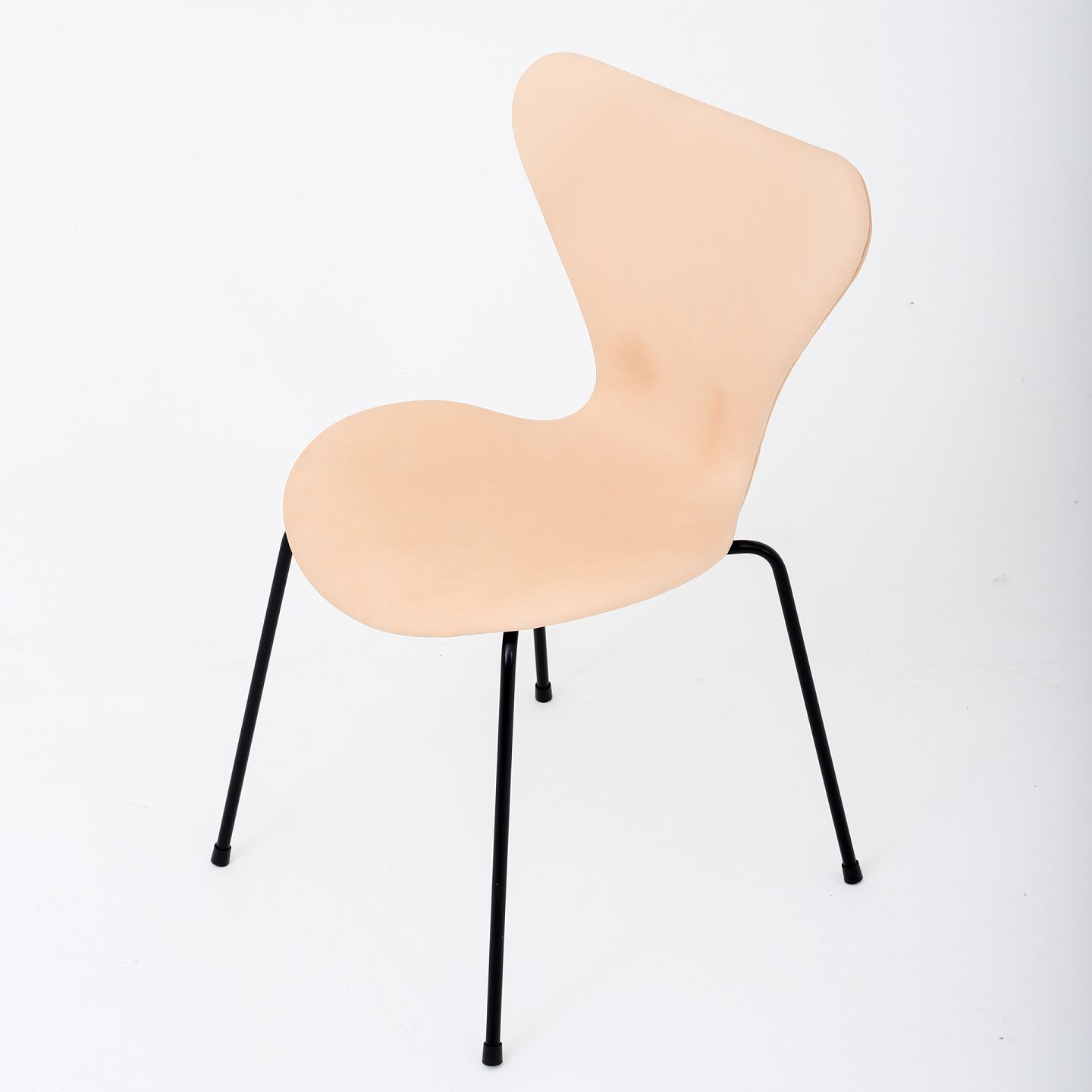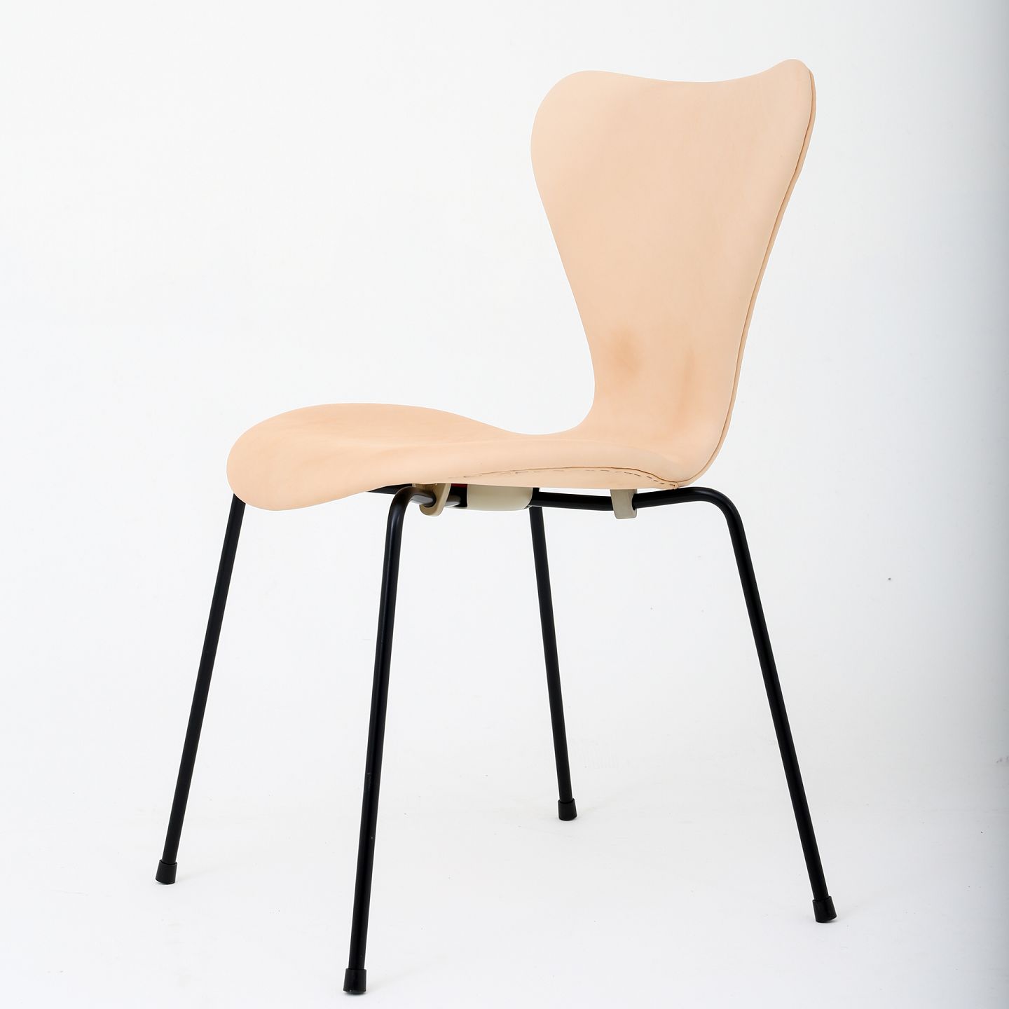 AJ 3107 - Nybetrukket 'Syver'-stol i naturlæder med sortlakeret stålstel. KLASSIK tilbyder polstring af stolen med stof eller læder efter eget valg.