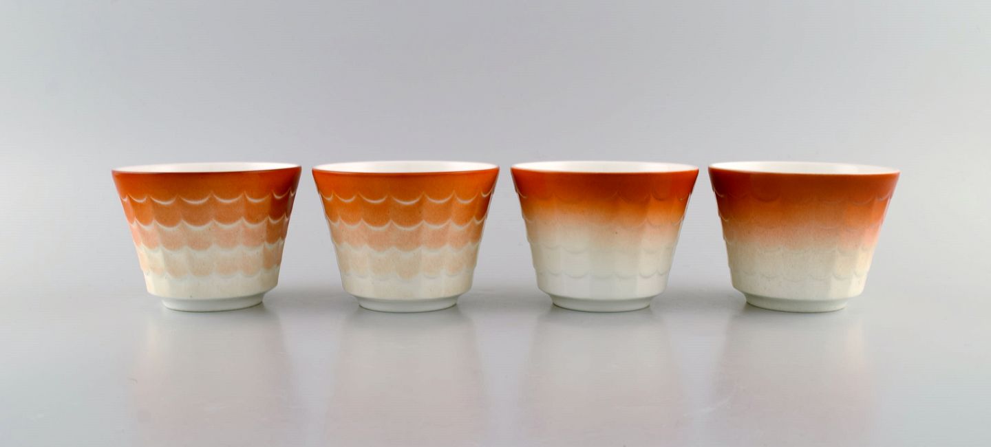 Wilhelm Kåge for Gustavsberg. Otte art deco urtepotter i glaseret porcelæn. Svensk design, 1960'erne.