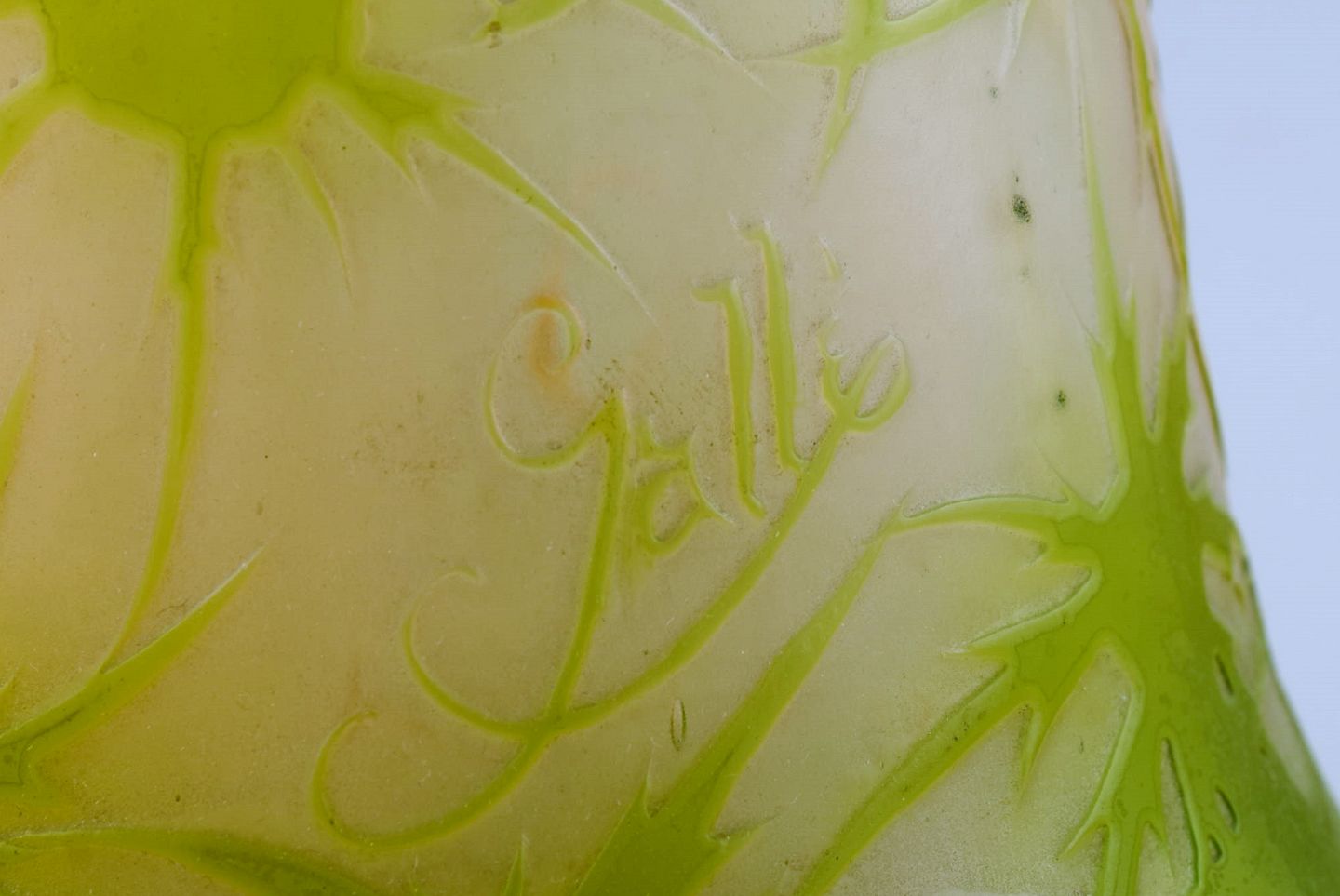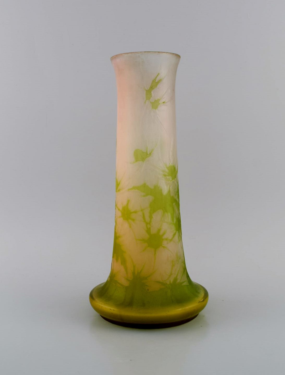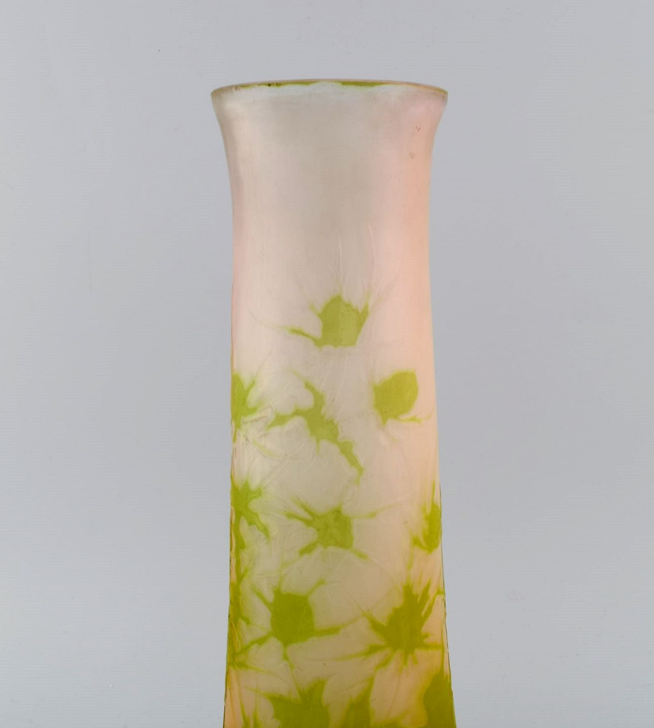 Large Emile Gallé vase in frosted and green art glass carved in the form of thistles. Early 20th century.