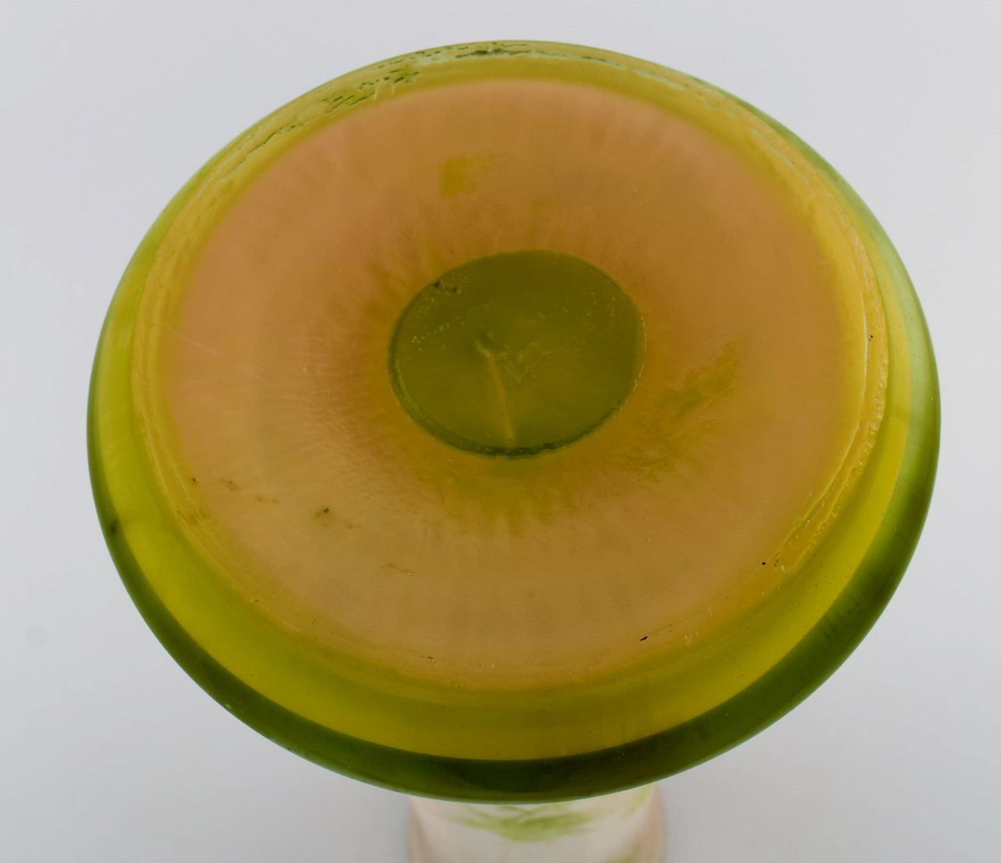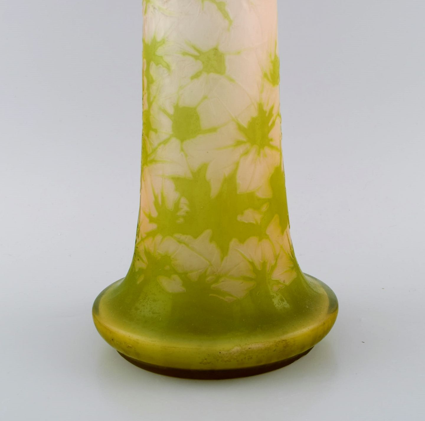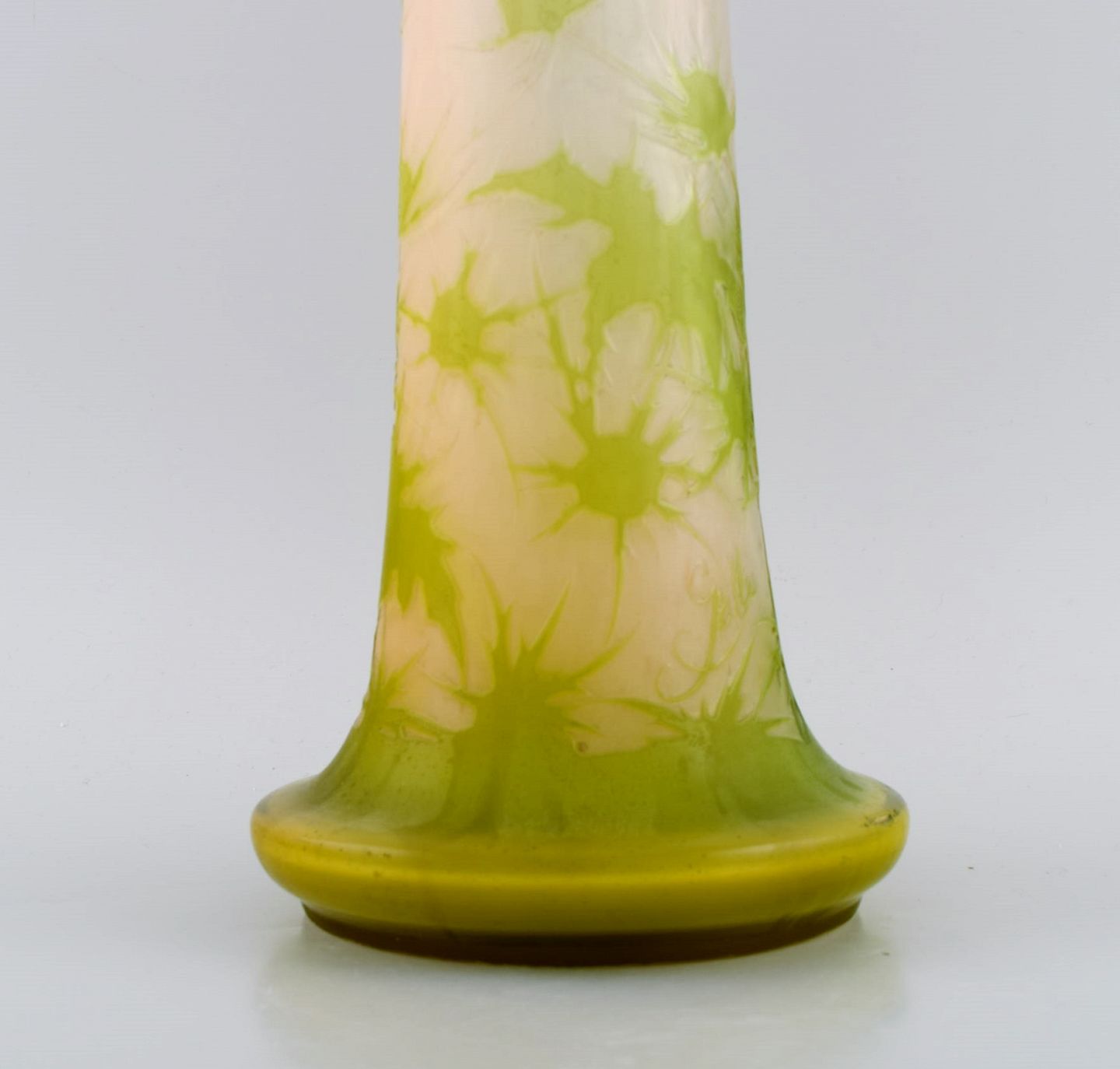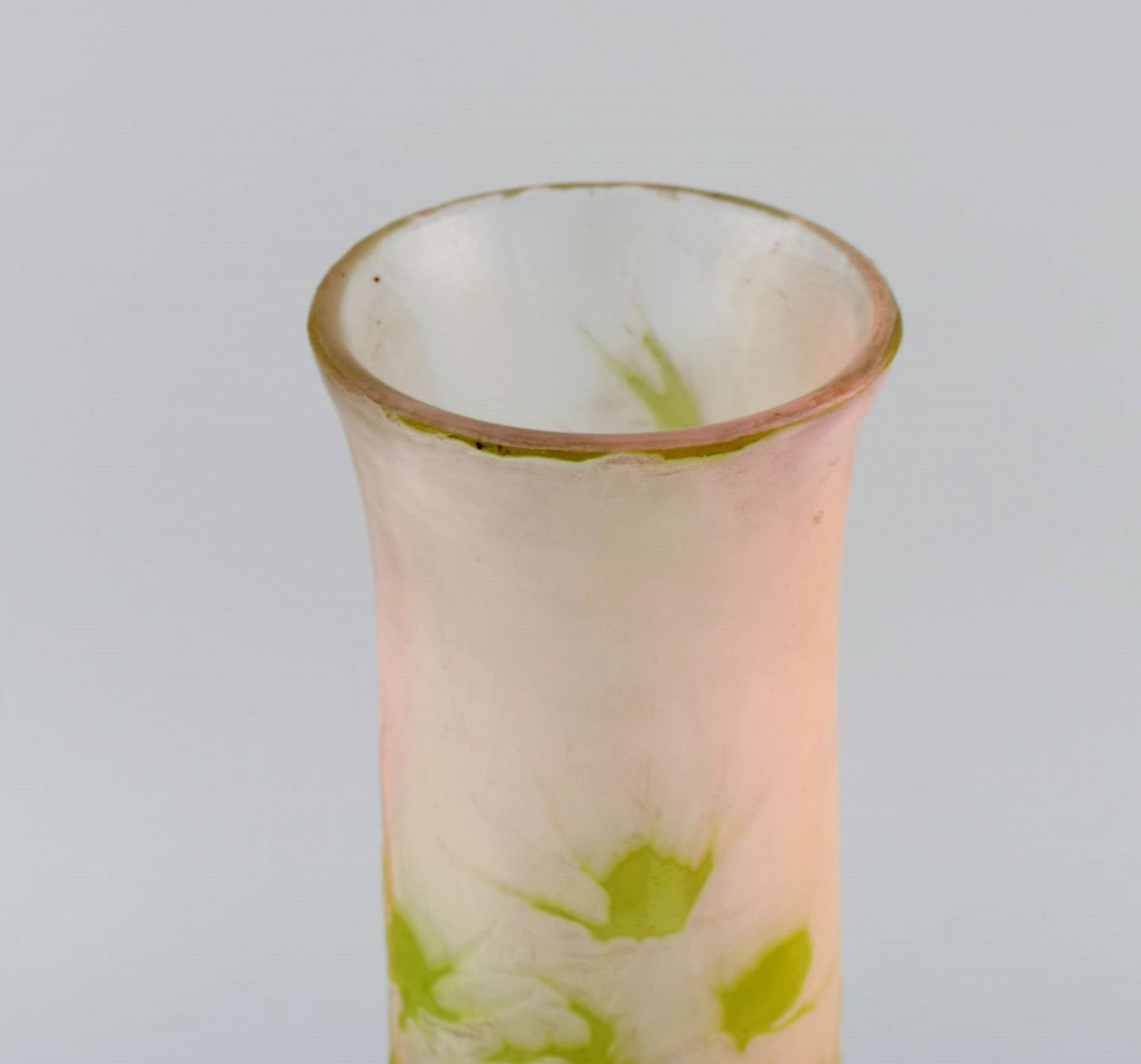 Large Emile Gallé vase in frosted and green art glass carved in the form of thistles. Early 20th century.
