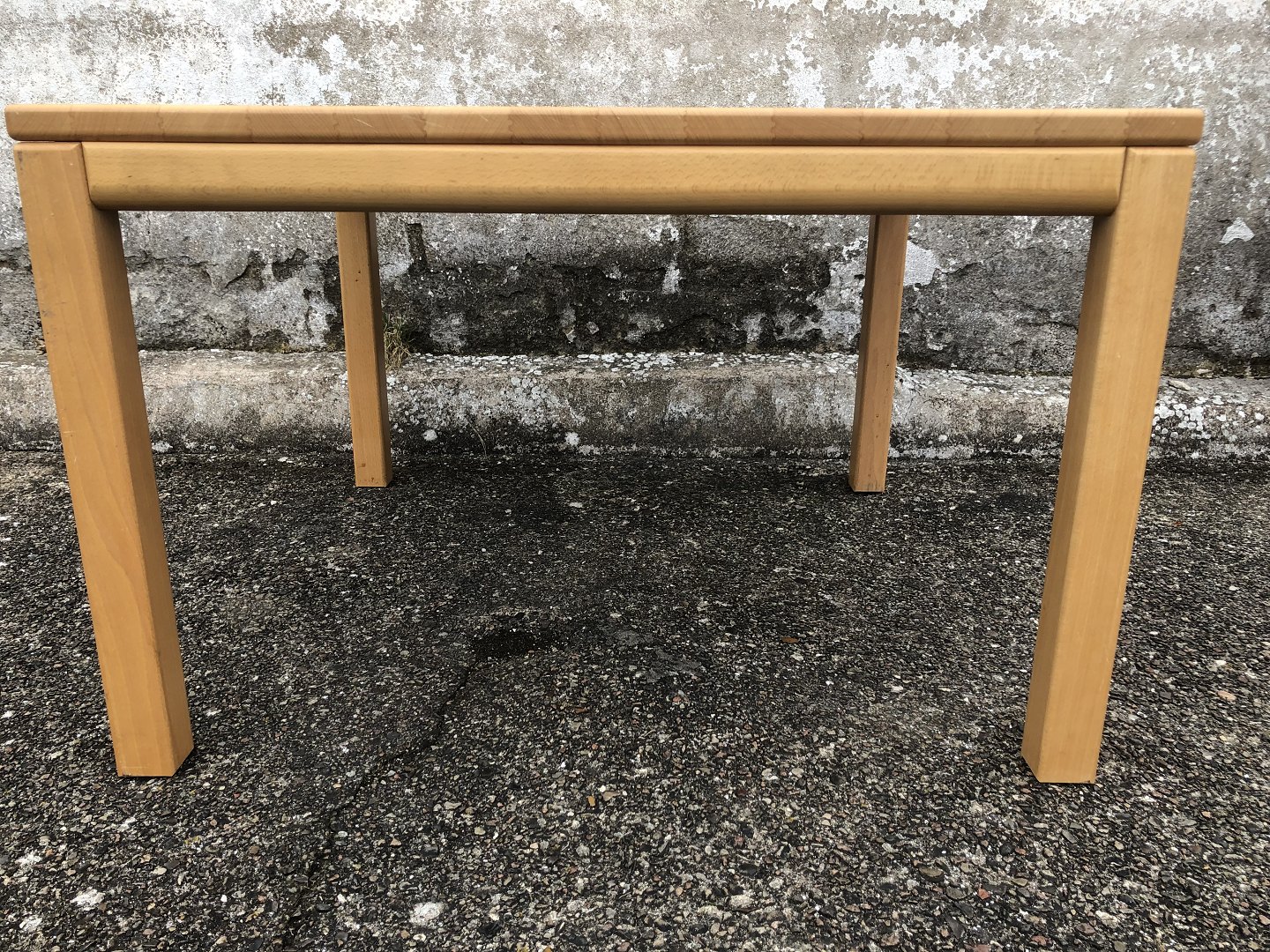 Haslev bord i lyst bøgetræ, 85x85x55cm. Enkelte små mærker på plade, ellers pæn stand.