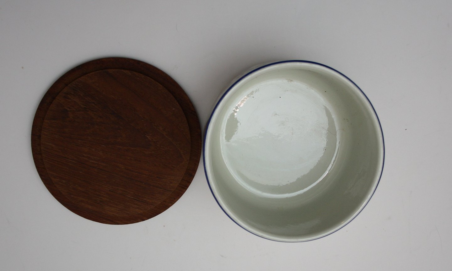 Rødbeder med låg (lav). Låget er lysere end på foto. Højde 8,5 cm. Diameter 13 cm. Få overfladekrakeleringer. Pris: 125 kr. stk. Lager: 1
