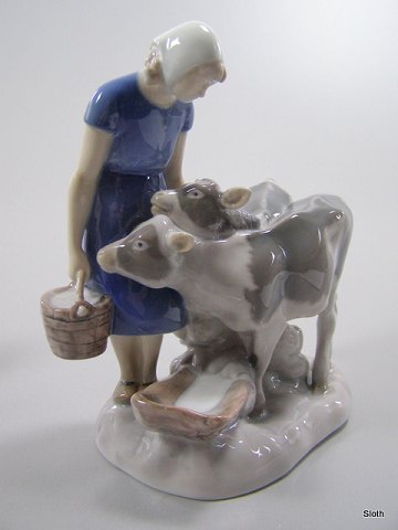 B&G 2270 Pige med Kalve 1. Sort. H: 21,5 cm.