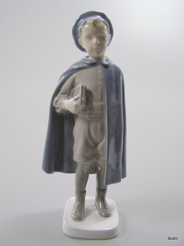 B&G 1720 Dreng med Kappe og Bog 1. sort. H: 22 cm.