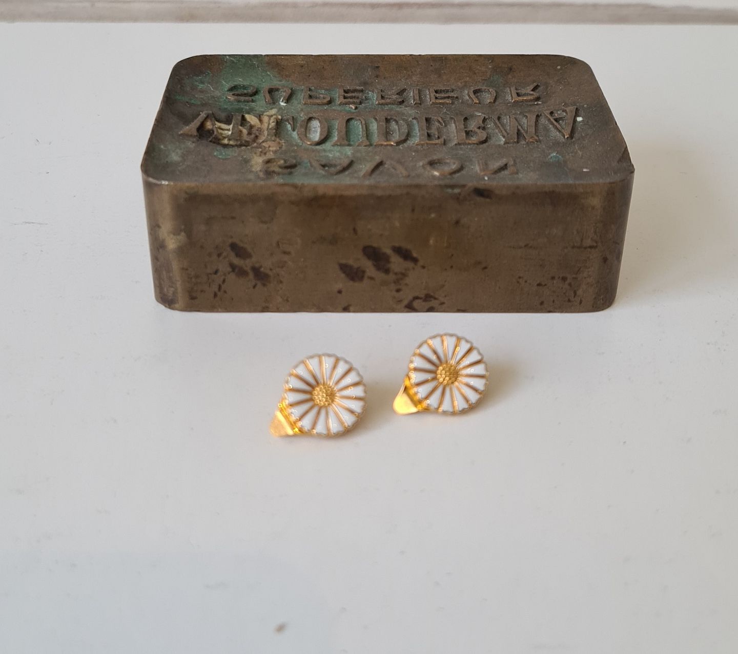 Bernard Hertz Marguerite øreklips i forgyldt sølv og emalje