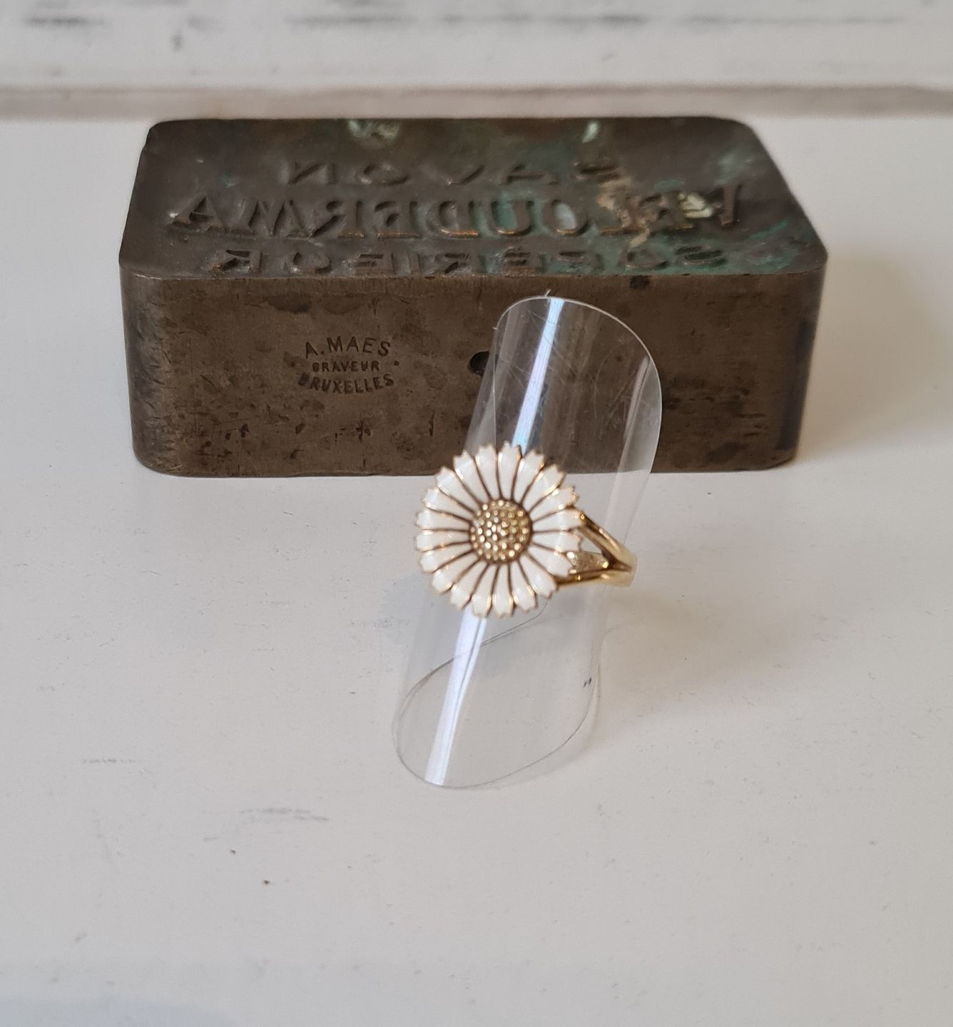 Georg Jensen Marguerite - Daisy ring in gold-plated sterling silver and enamel 15 mm.