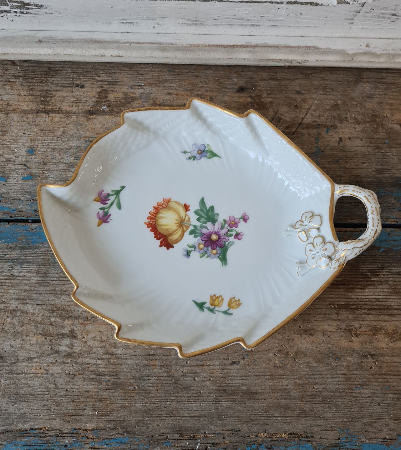 Royal Copenhagen Light Saxon Flower leaf-shaped dish