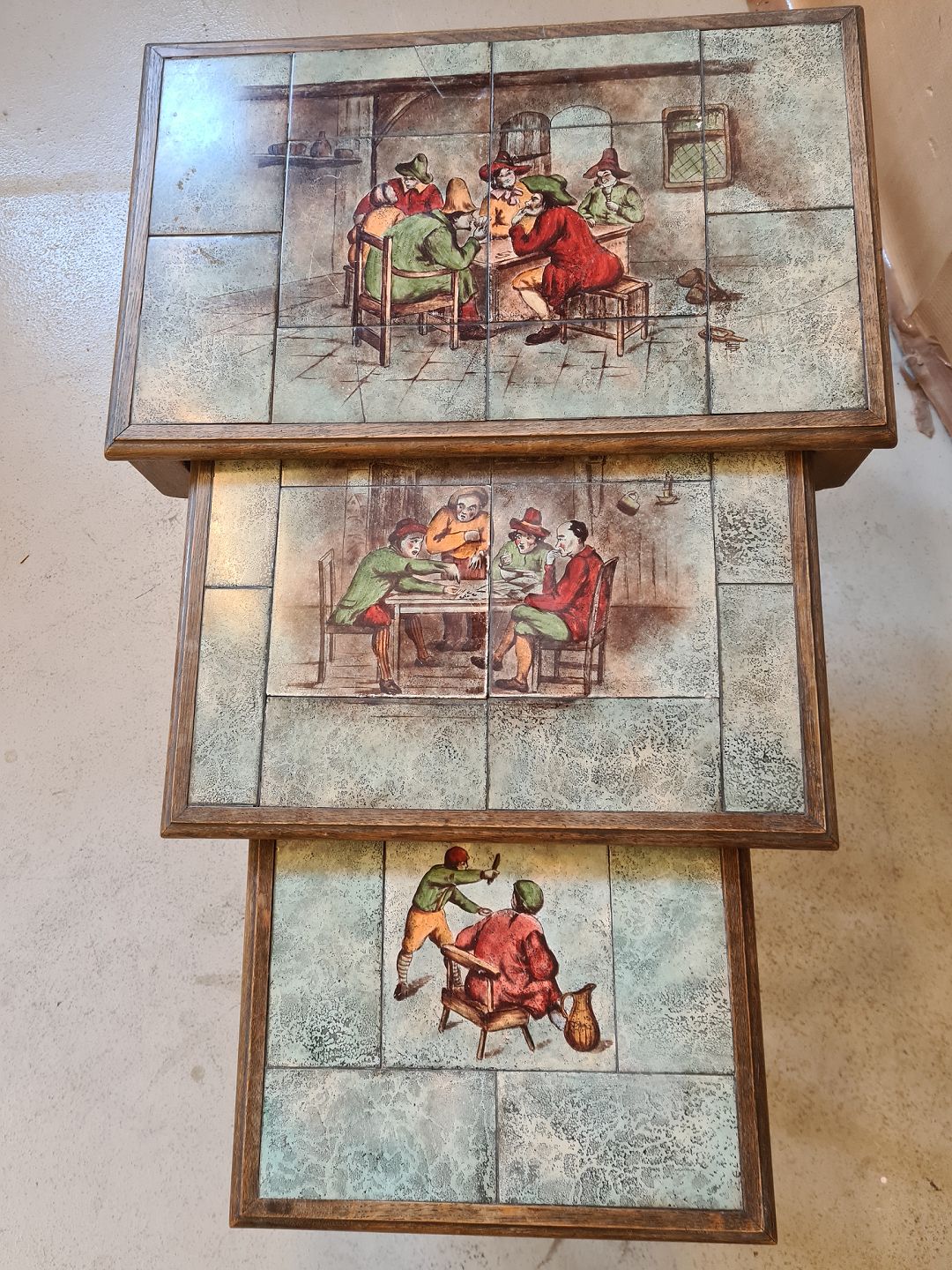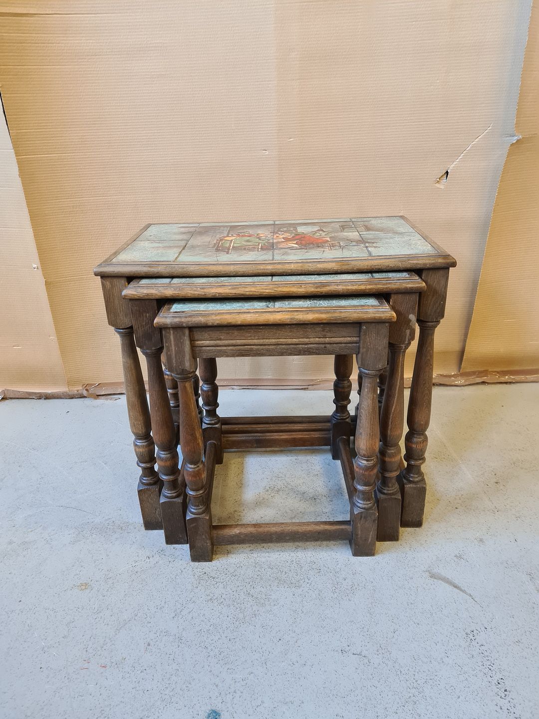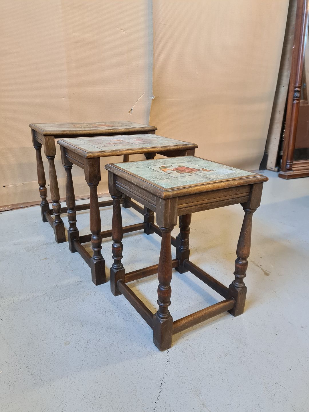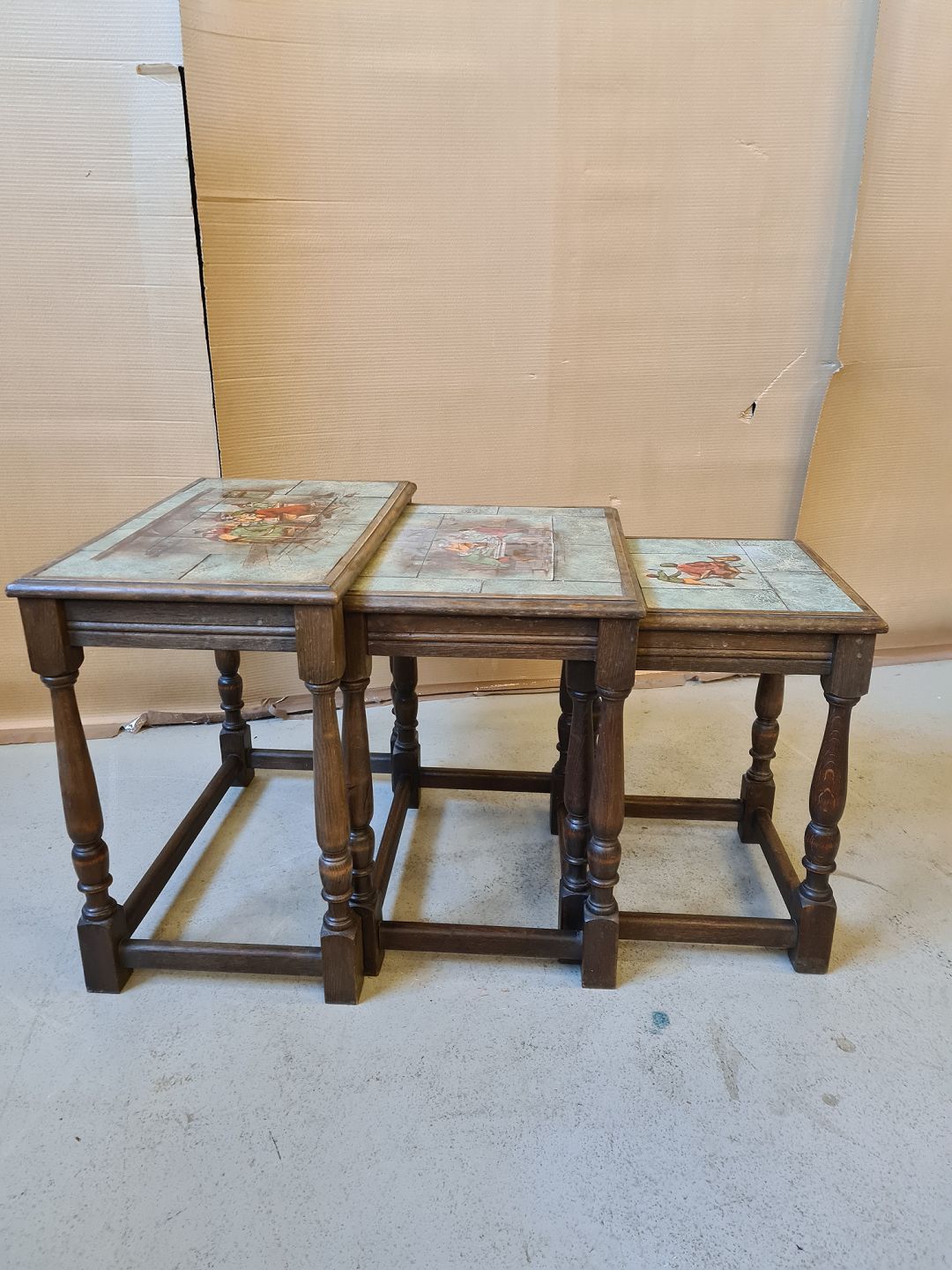 3 Lampeborde i egetræ med kakler fra 1930erne.