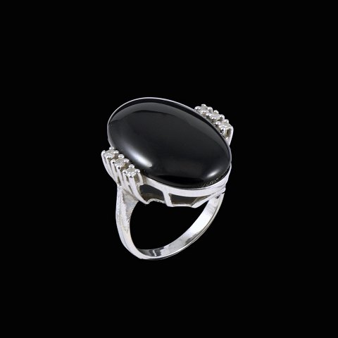 Ring i 14k hvidguld med onyx og diamanter 0.06ct.