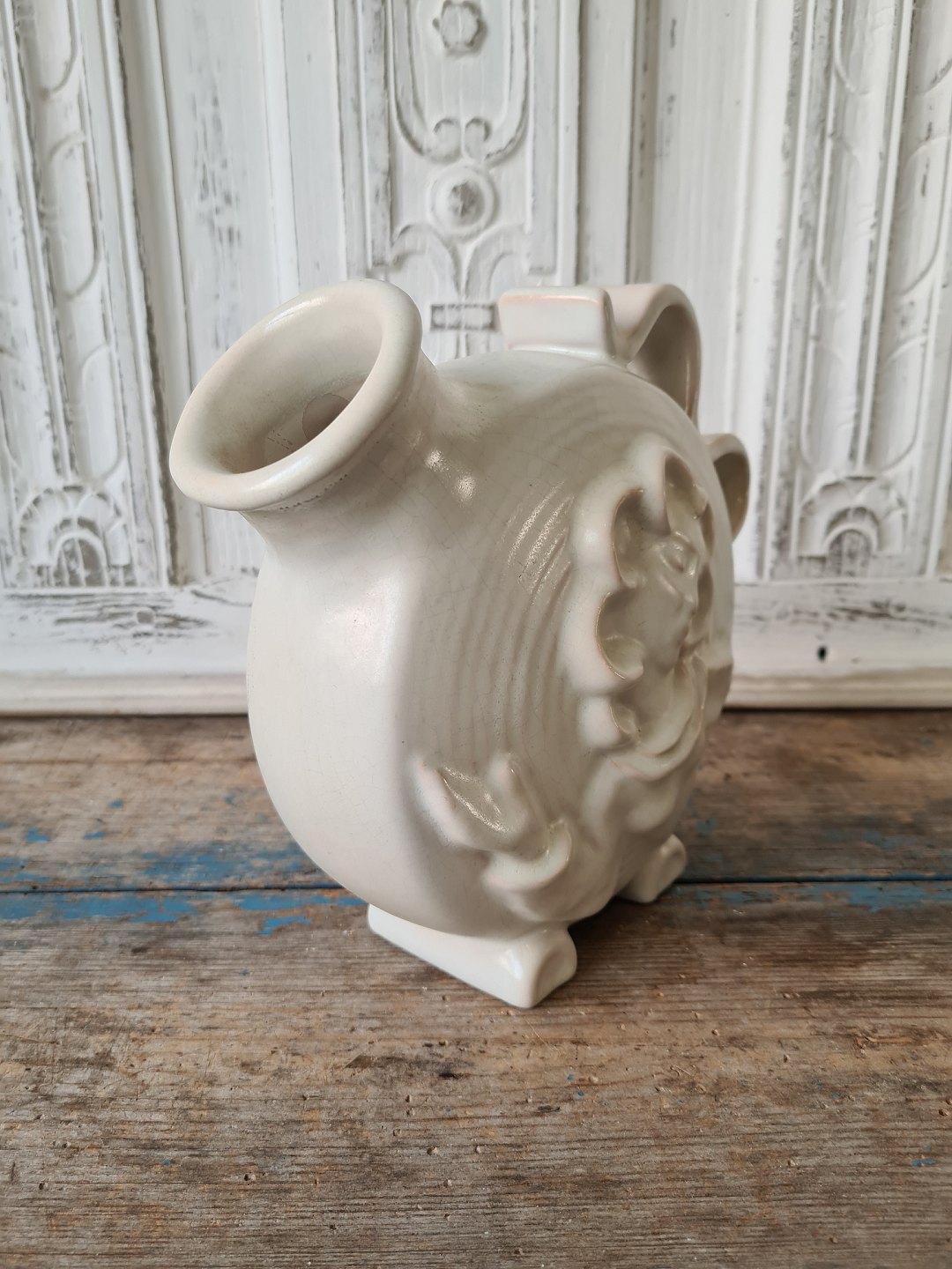 Michael Andersen cream-colored ceramic jug decorated with woman in relief