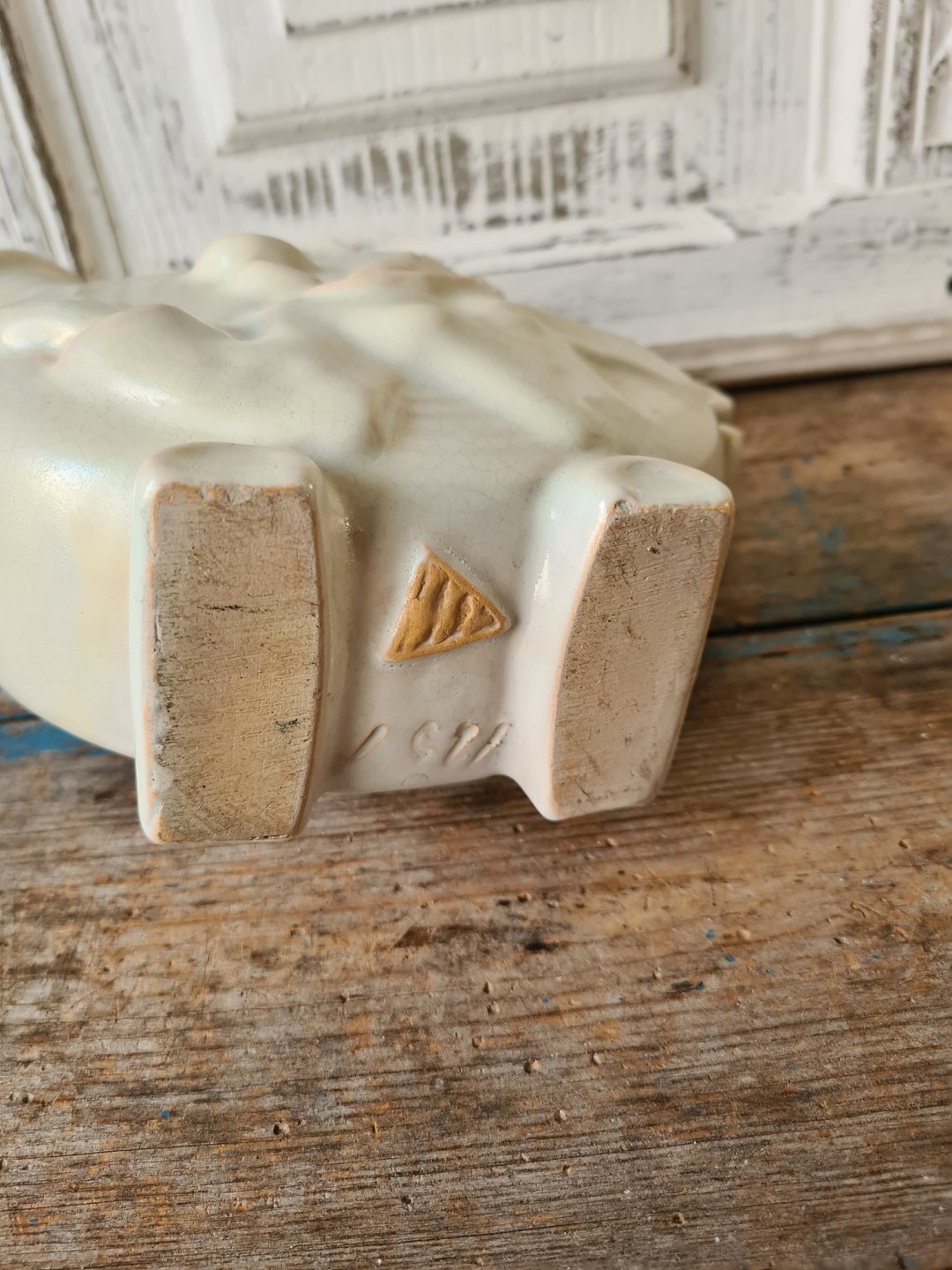 Michael Andersen cream-colored ceramic jug decorated with woman in relief.