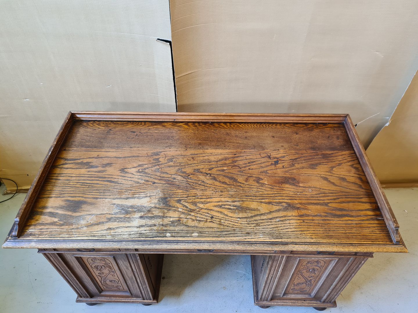 Skrivebord i fineret og massivt egetræ fra 1910erne.