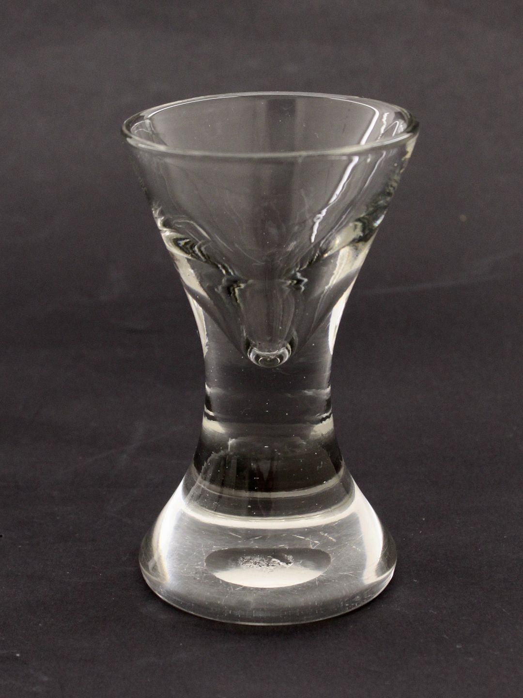 Timeformet frimurer glas på massiv fod 12,3 cm. Conradsminde/Ålborg Glasværk 19.årh. emne nr. 494346