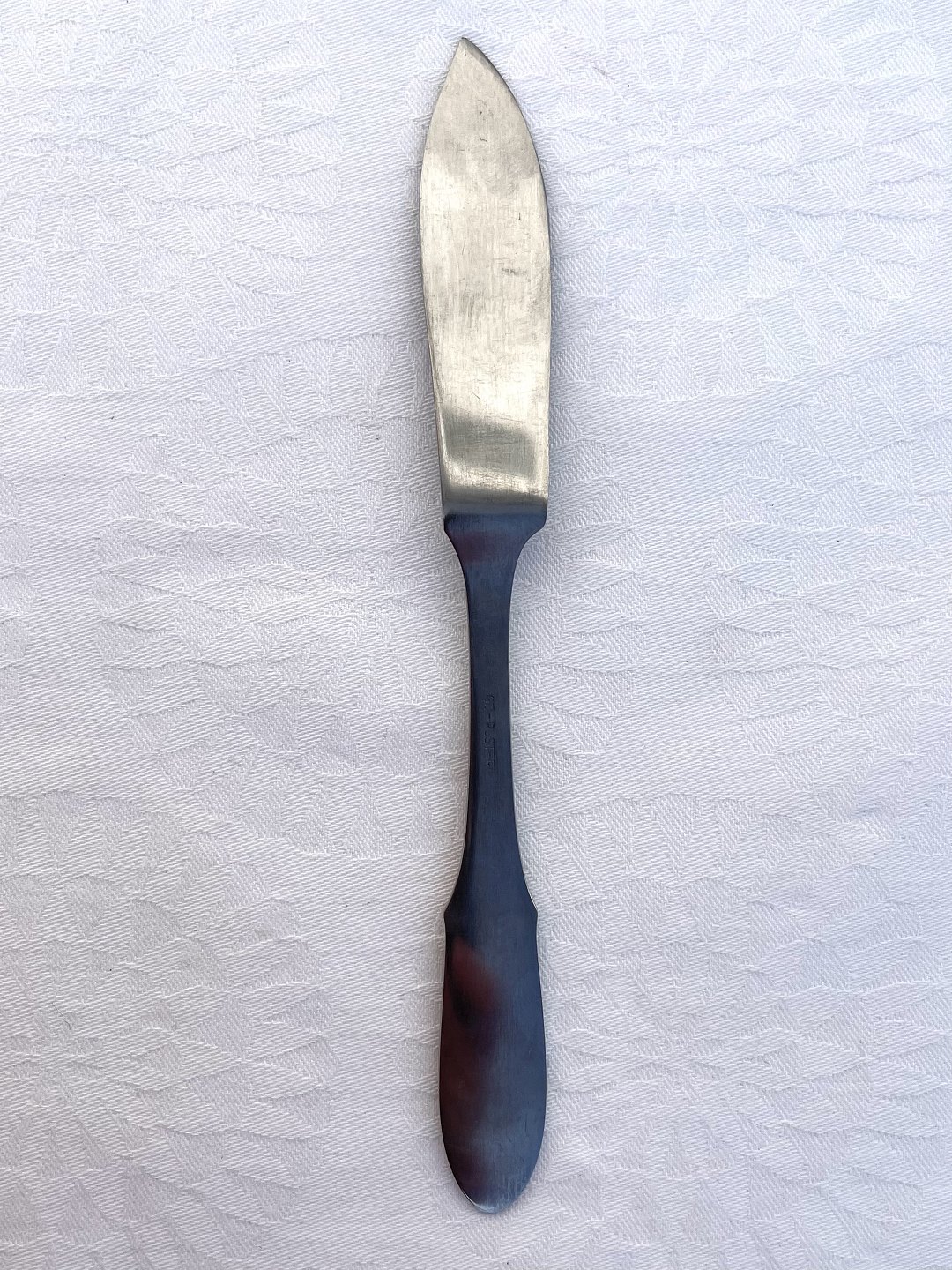 Mitra, Georg Jensen, Stålbestik, Fiskekniv, 19cm lang, Design Gundorph Albertus *Pæn stand*