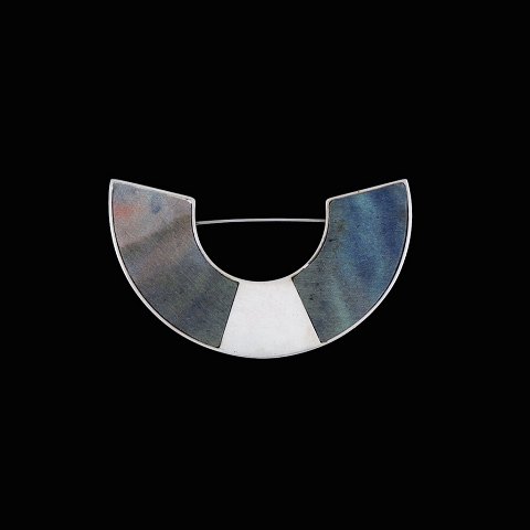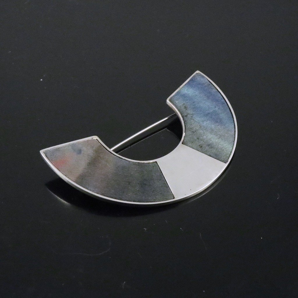 Leon Kastbjerg Nielsen / Hanne Foss Brink. Broche i sterlingsølv med tekstilkunst.