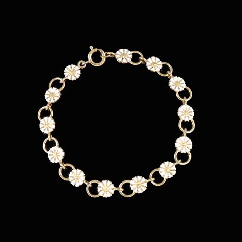 Bernhard Hertz. Marguerit / Daisy armbånd i forgyldt sterling sølv med emalje.