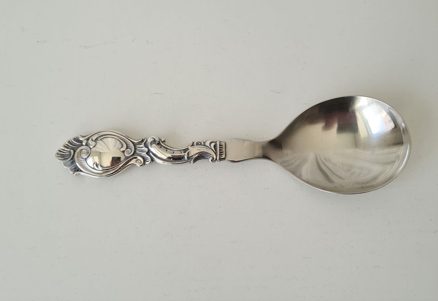 Serveringsske i sølv og stål i rokoko inspireret design fra Cohr 1951