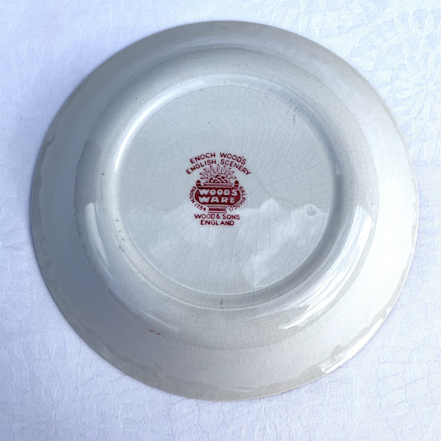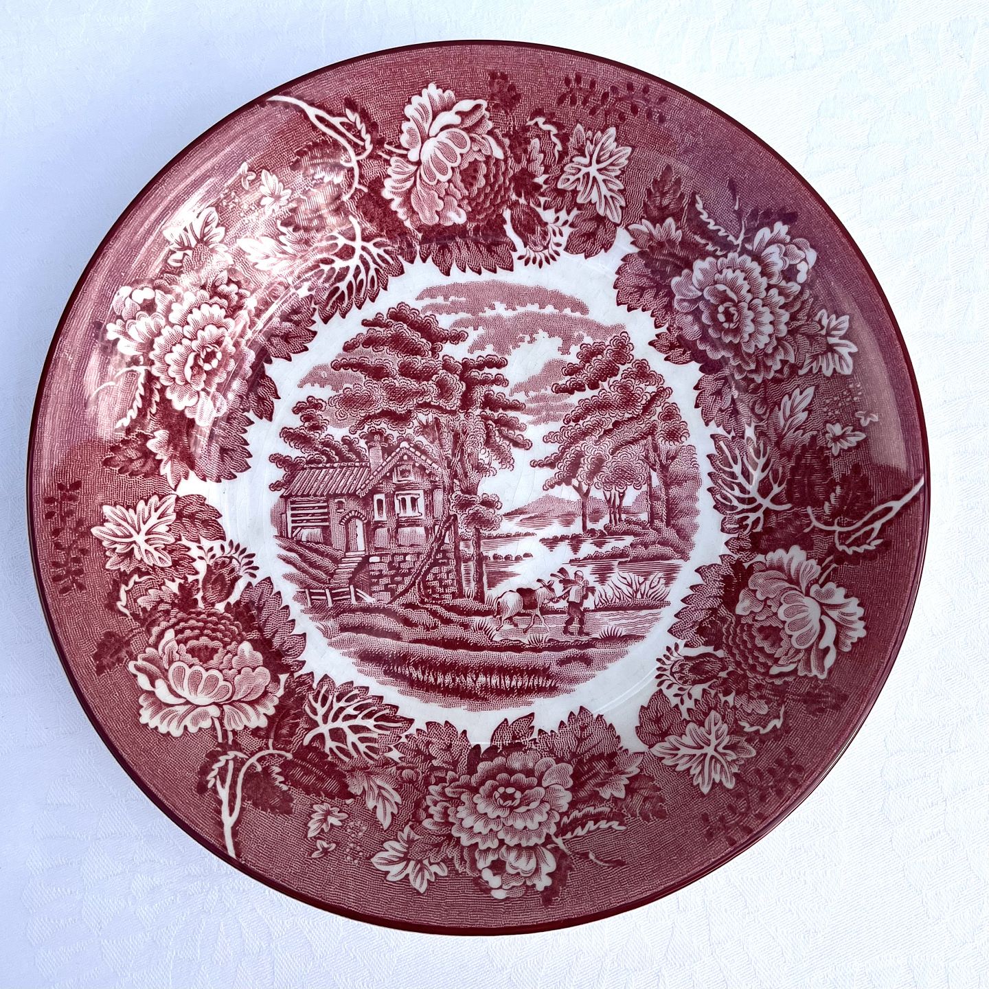 English faience, Enoch Woods, English scenery, Red Paris, Deep plate, 19.5cm in diameter * Slightly crackled *