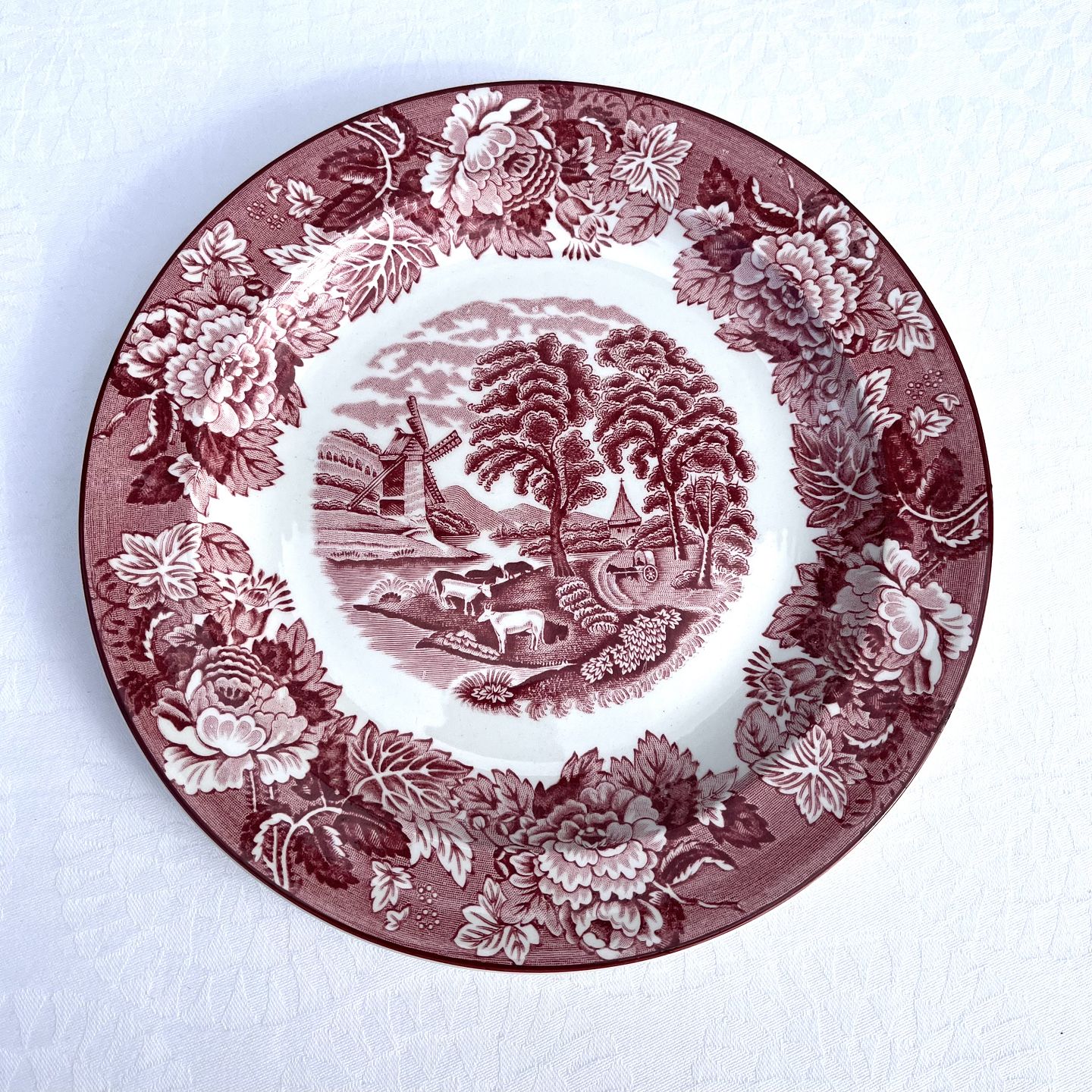 English faience, Enoch Woods, English scenery, Red Paris, Small Dinner Plate, 23cm in diameter * Nice condition *