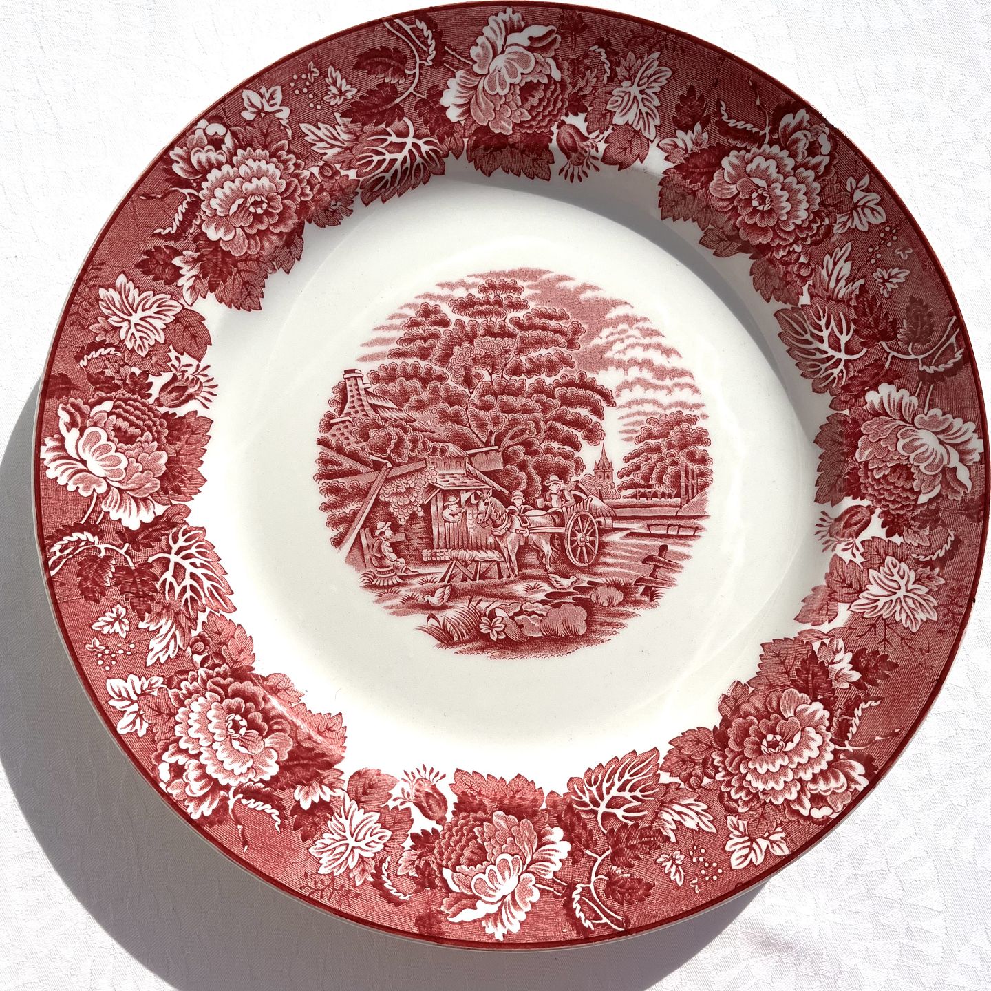 Engelsk fajance, Enoch Woods, English scenery, Rød Paris, Lagkagefad, 30,5cm i diameter *Pæn stand*