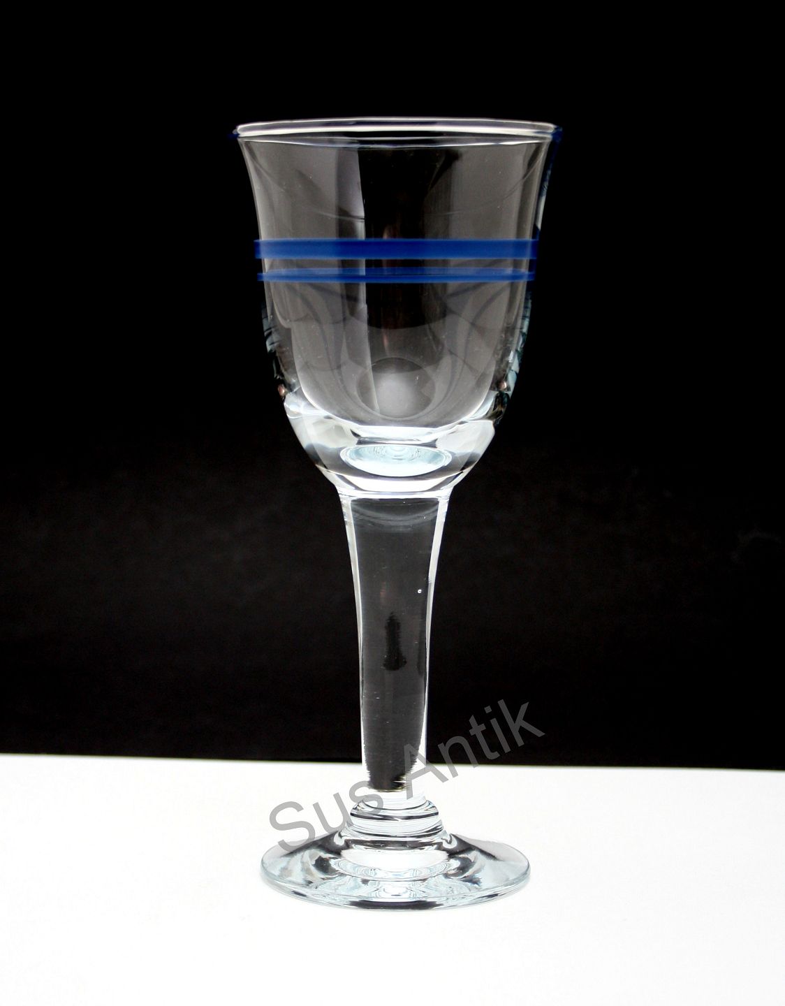 Holmegaard glasværk, Blå klokke glas. Designet af Ole Winther, 1974-90. Hvidvin, højde 17,7 cm. Pris: 200 kr. stk. Lager: 12