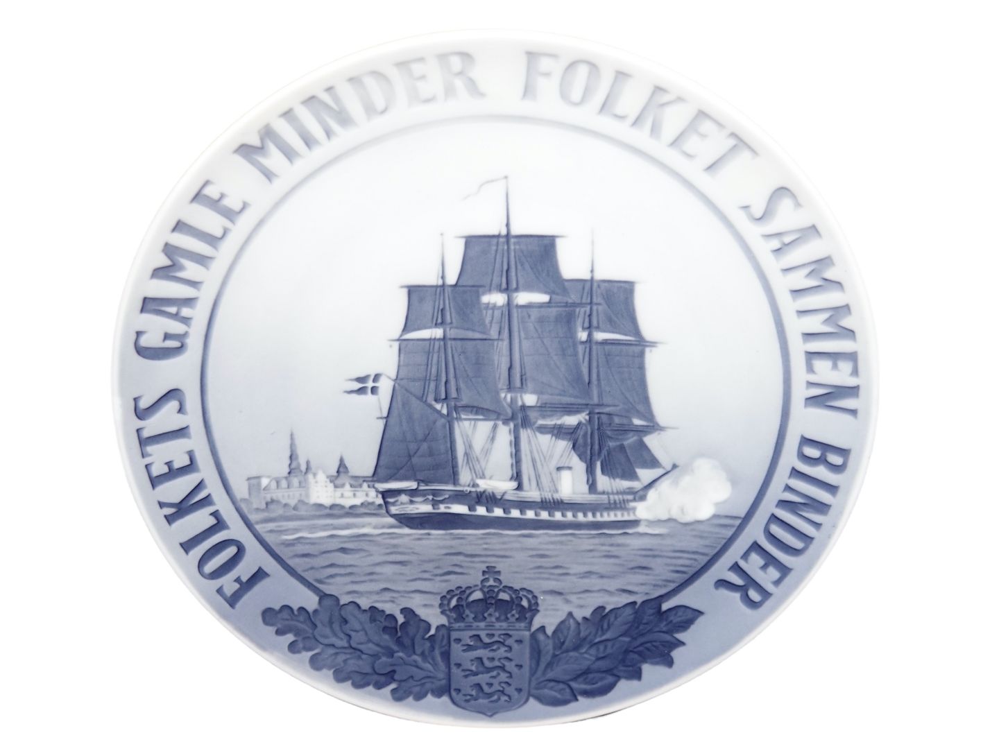 Royal Copenhagen Mindeplatte fra 1926, Fregatten Jylland. FOLKETS GAMLE MINDER FOLKET SAMMEN BINDER.